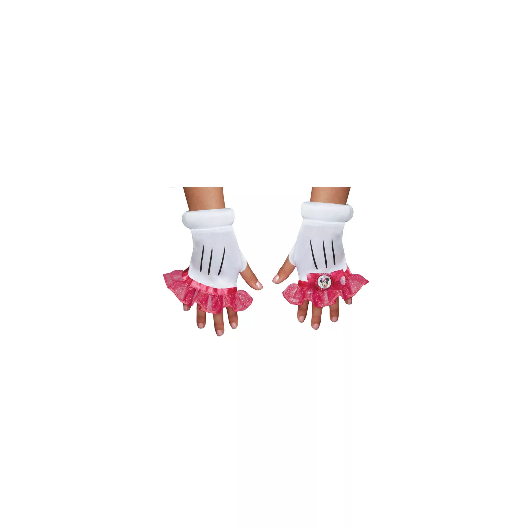 What's pink and pretty and perfect for Halloween? The Officially Licensed Pink Minnie Child Gloves, which feature Minnie's traditional white gloves with black marks on the front and a pink ruffled hem that leaves the bottom half of your fingers exposed.