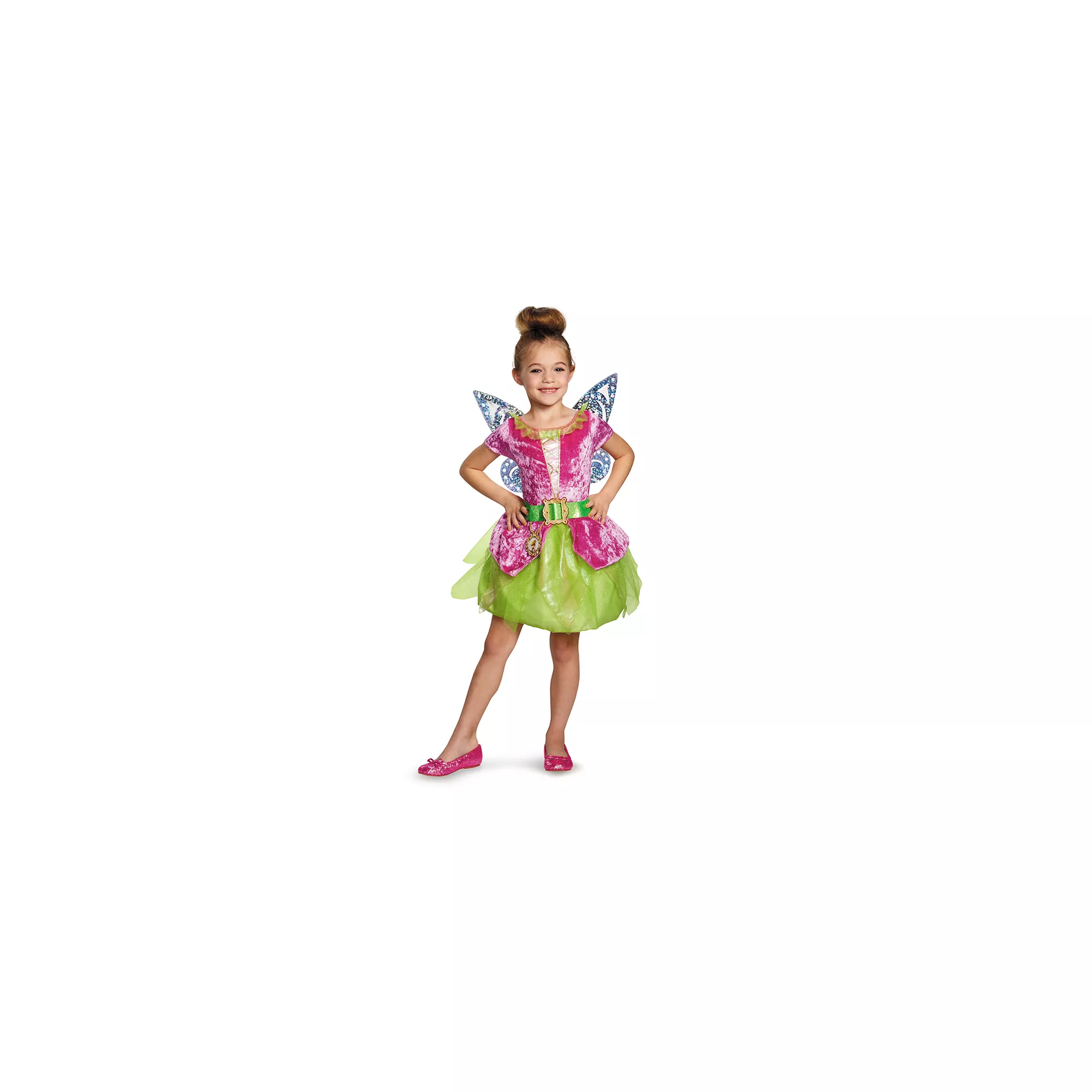 Rescue Pixie Hollow in the Officially Licensed Pirate Tink Classic Child Costume. Your child will sparkle with this twist on a traditional Tinkerbell costume. She'll be wearing this fairy confection, a pink and green dress with sparkly silver wings, long after Halloween is over.