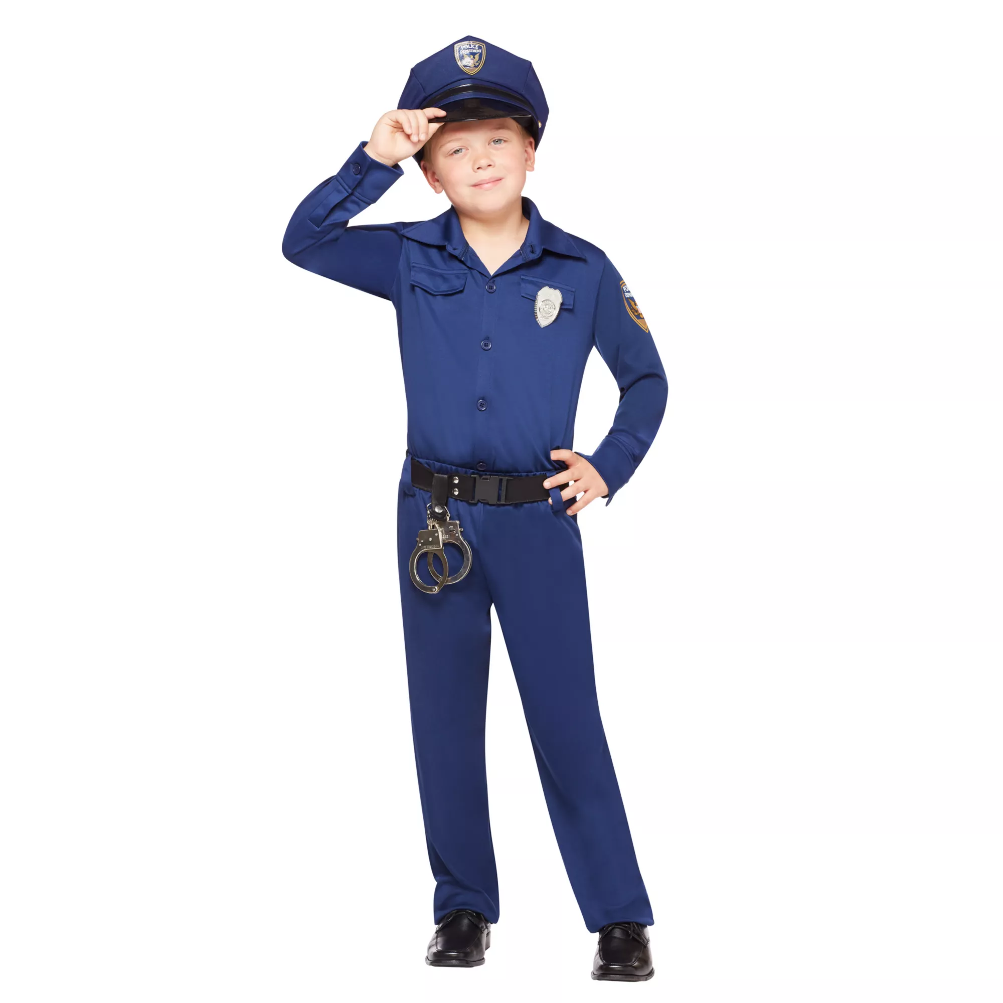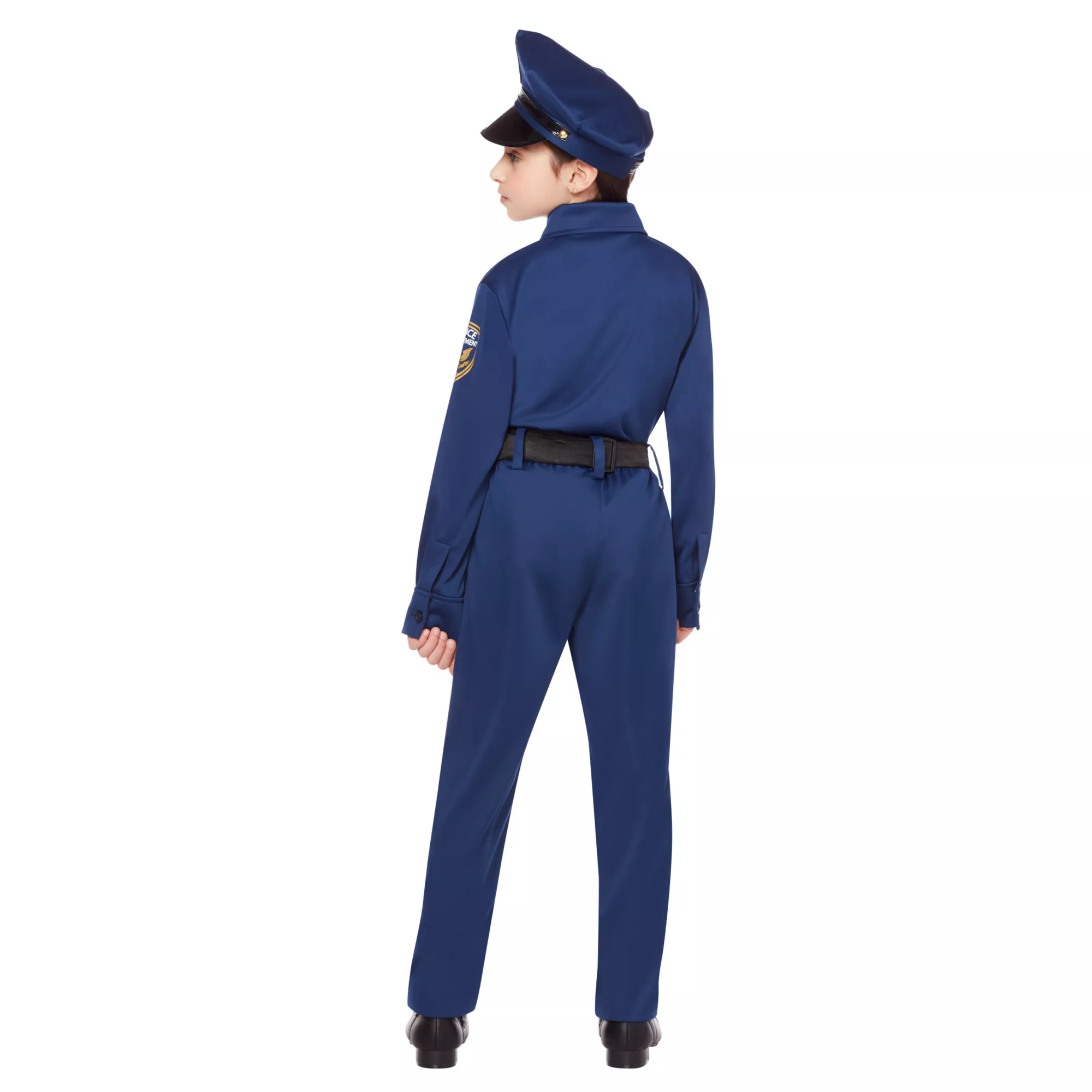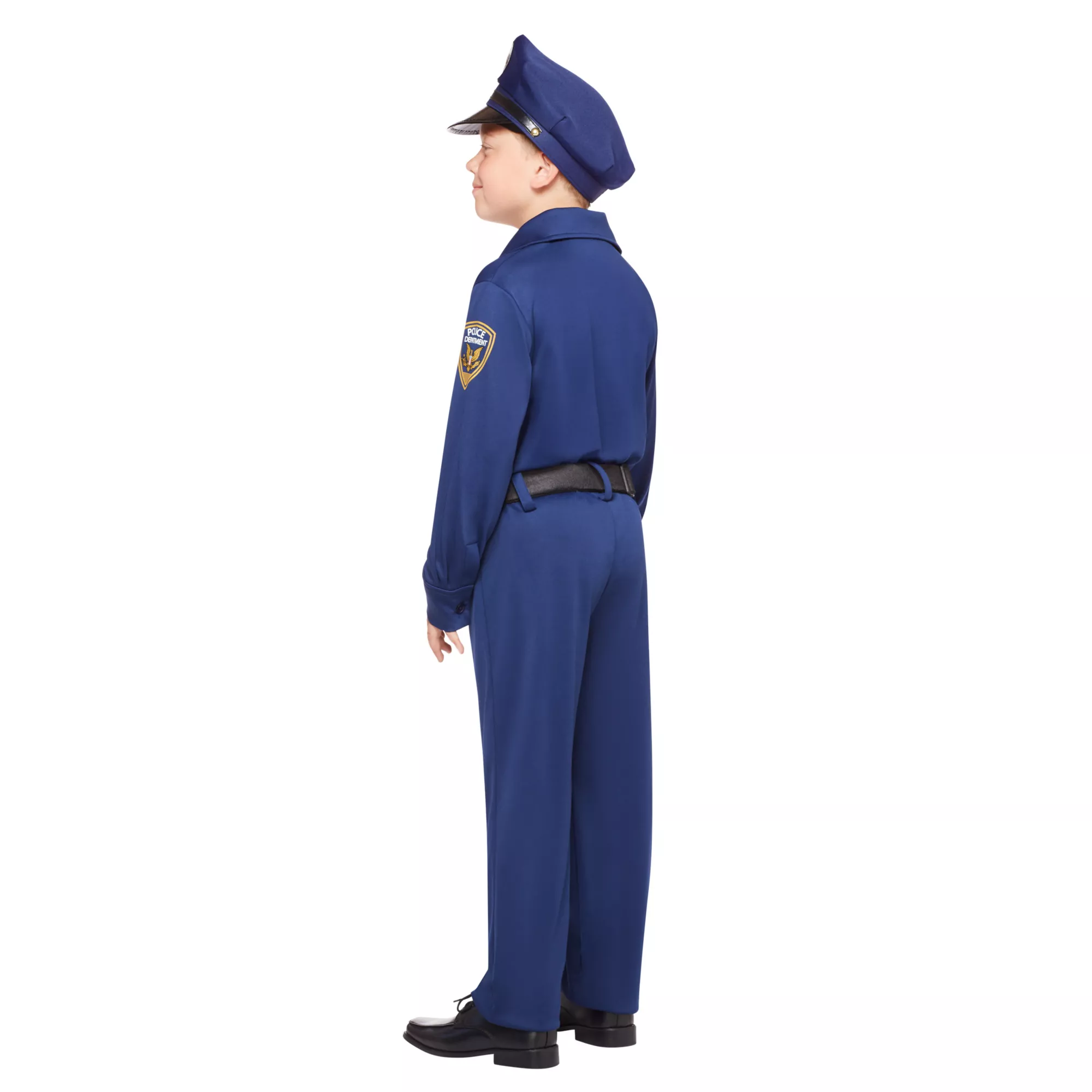 Serve and protect your neighbor hood when you wear the Police Officer Child Costume. This navy blue shirt features a metal badge and comes complete with matching pants, hat and a belt.