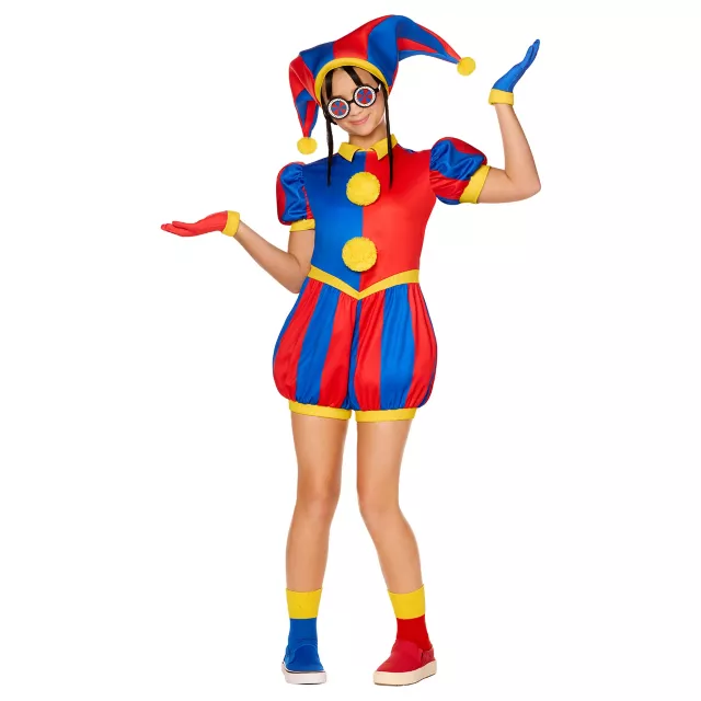 Welcome to The Amazing Digital Circus! This show must go on this Halloween so step right into this official Pomni Costume and watch the magic happen. This costume includes Pomni's circus romper, a hat, glasses, gloves, and matching socks!