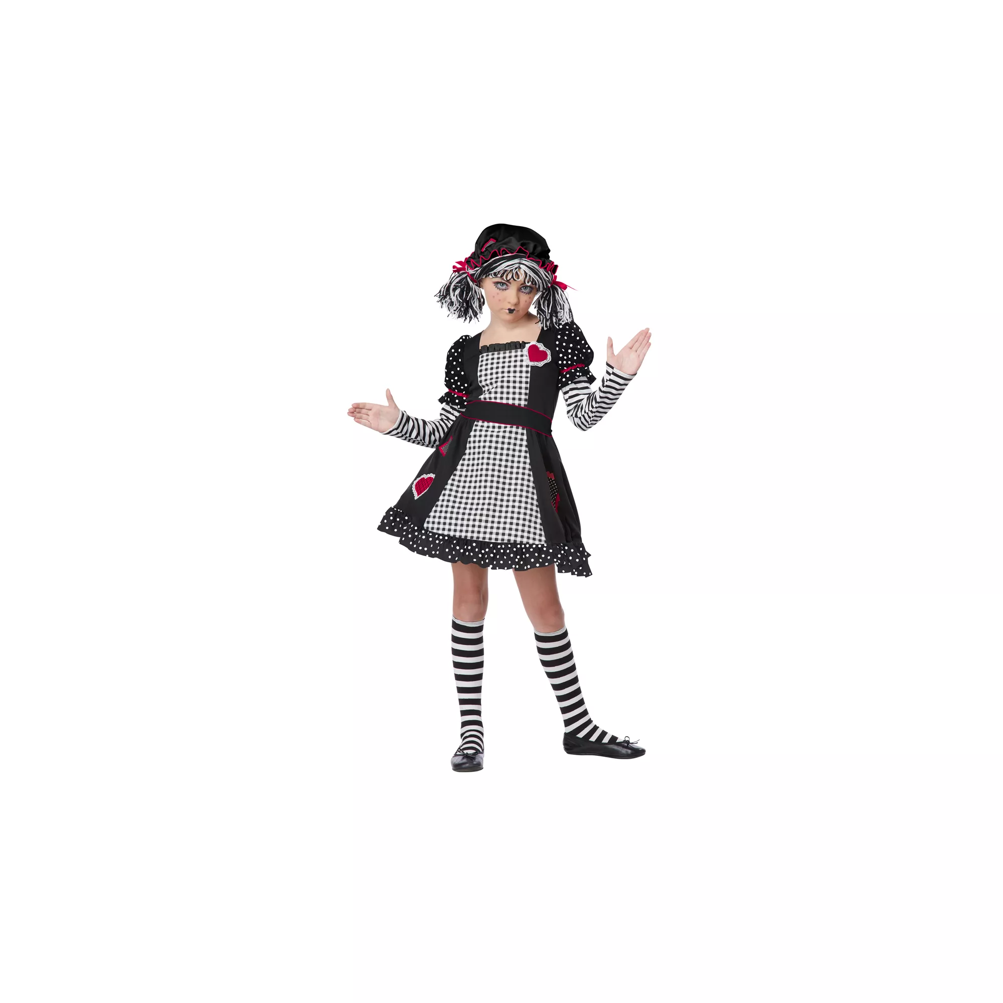 Take a different approach to your baby doll look in this Rag Doll Girls Child Costume. Black, white, and red patterned dress provides a Gothic twist on the traditional Halloween costume. No pink frills and bows for you!