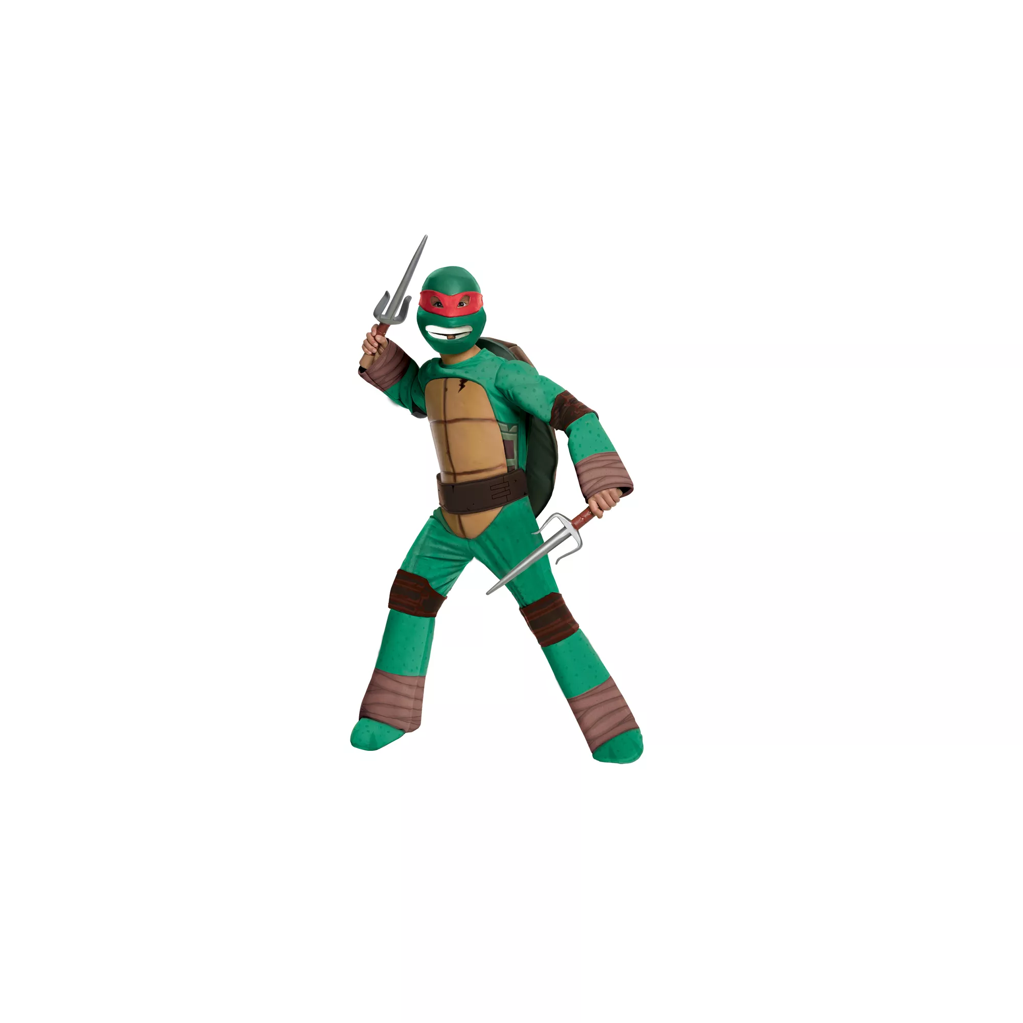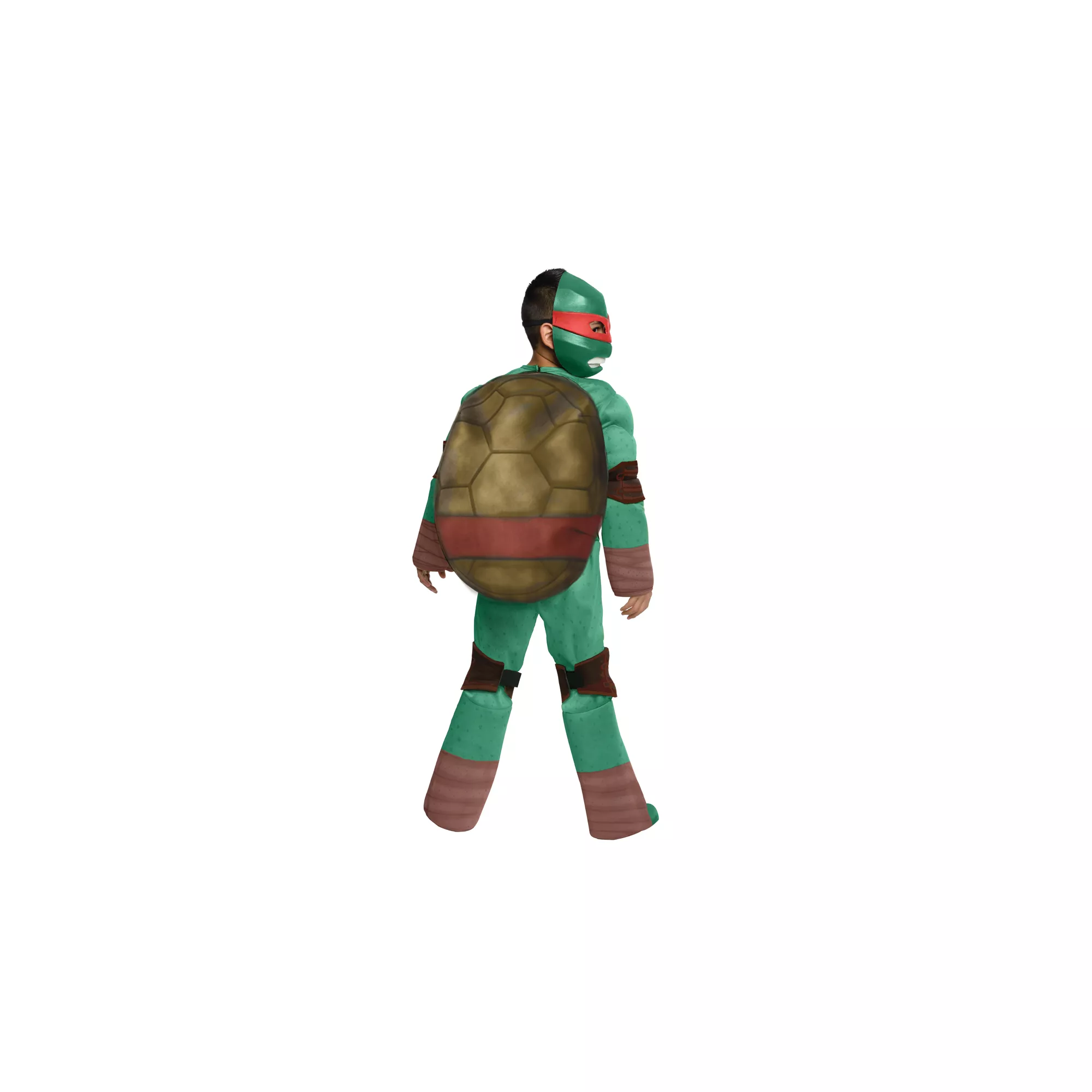 Use your temper to your advantage on Halloween when you wear this officially licensed Teenage Mutant Ninja Turtles Raphael Deluxe Child Costume. Green character jumpsuit comes complete with a character mask and turtle shell.