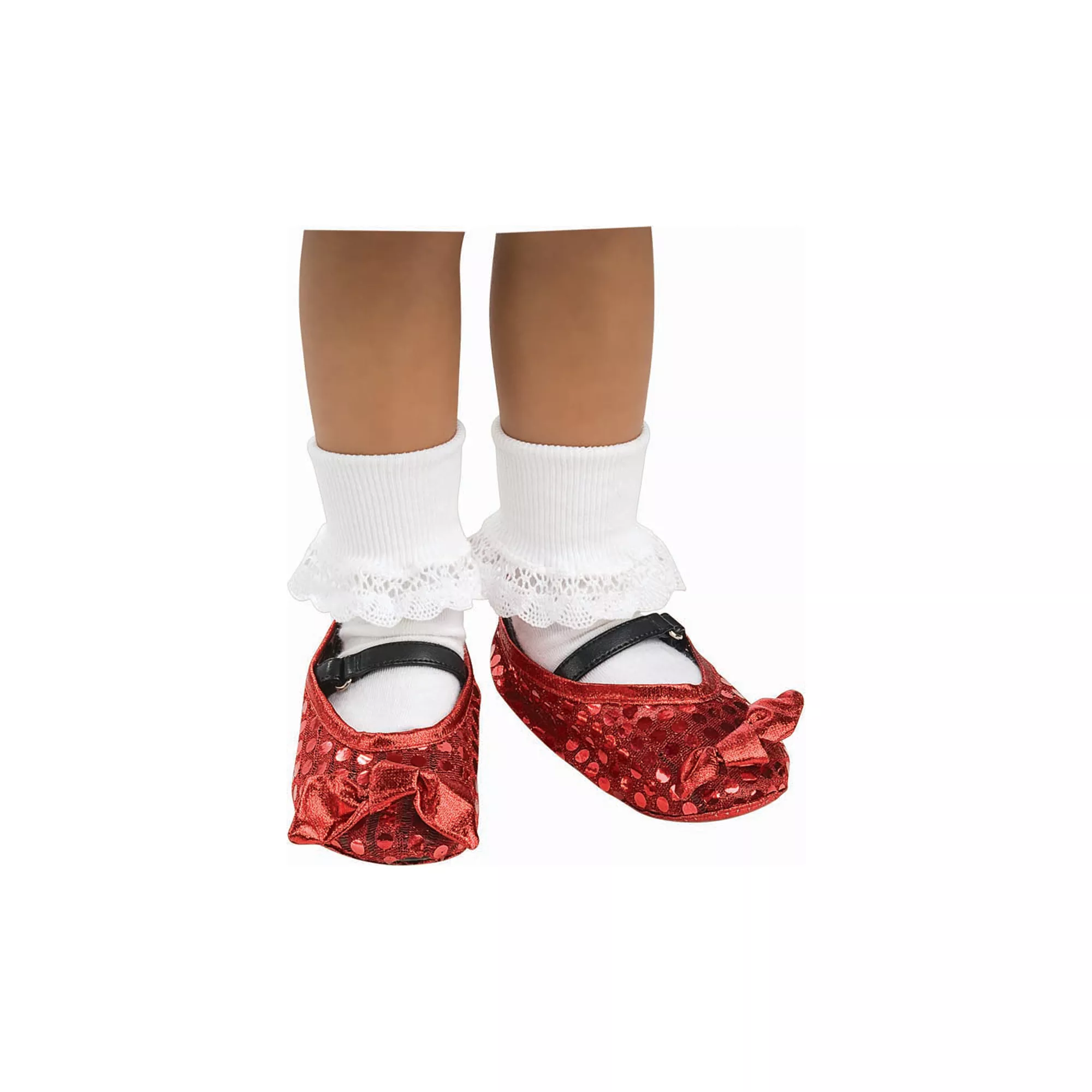 Click your heels three times and recite after me, "There's no place like home..." Make a little Halloween magic of your own when you complete your costume with these officially licensed Wizard of Oz Ruby Slipper shoe covers. Sized for a child.