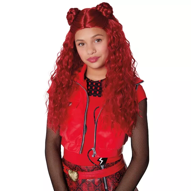 Complete your Descendants: The Rise of Red costume with this kids' Red wig! You'll look just like the daughter of the Queen of Hearts in this bright red wig with long waves and braided buns.