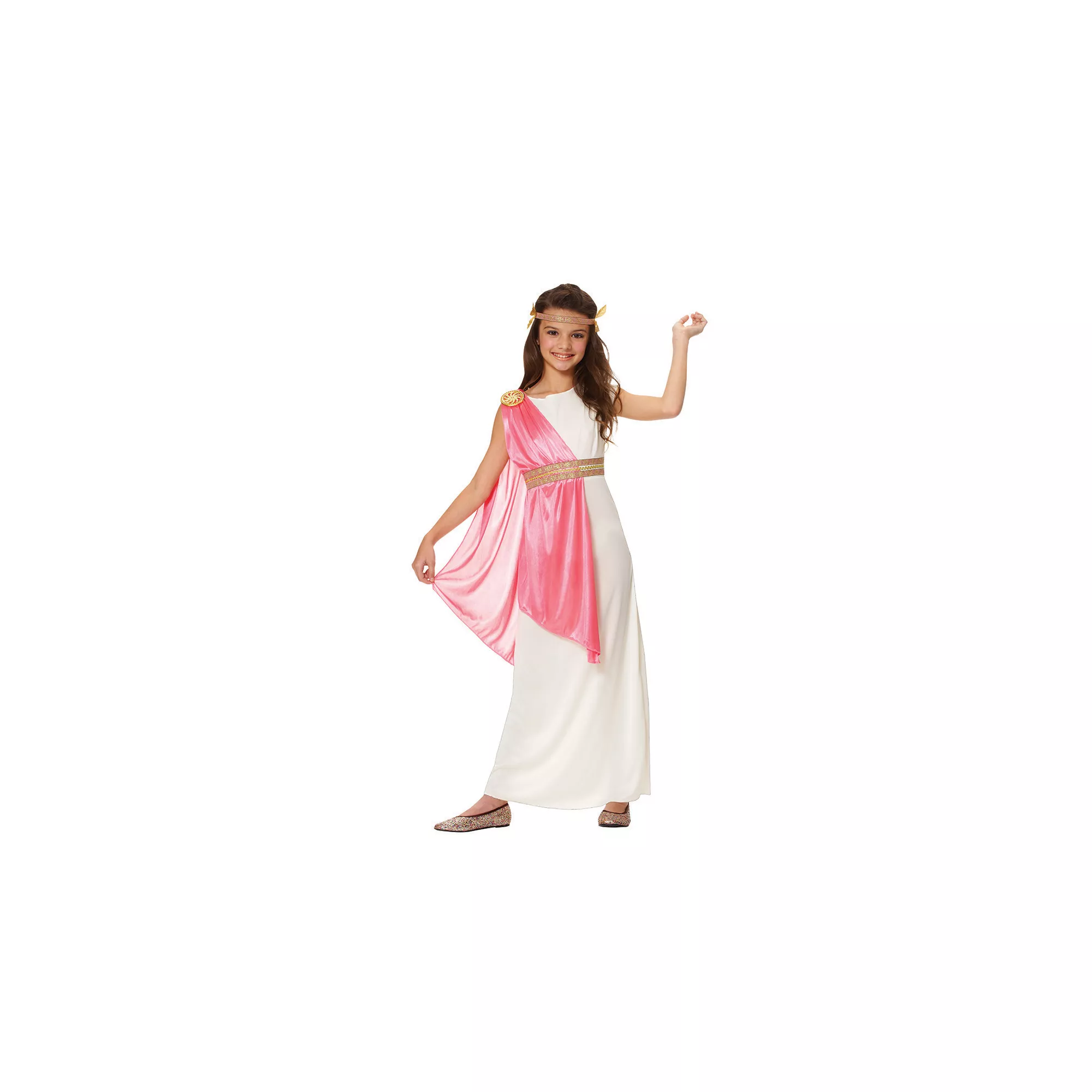 Reside in a palace, rule the land, and enjoy the royal life in this Roman Empress Child Costume. You may be small, but you'll have an entire army to back you up if anyone dare pose a threat to their highness. Costume comes complete with powder white gown, pink sheer cape attached by gold detail and medallion, and matching headpiece.