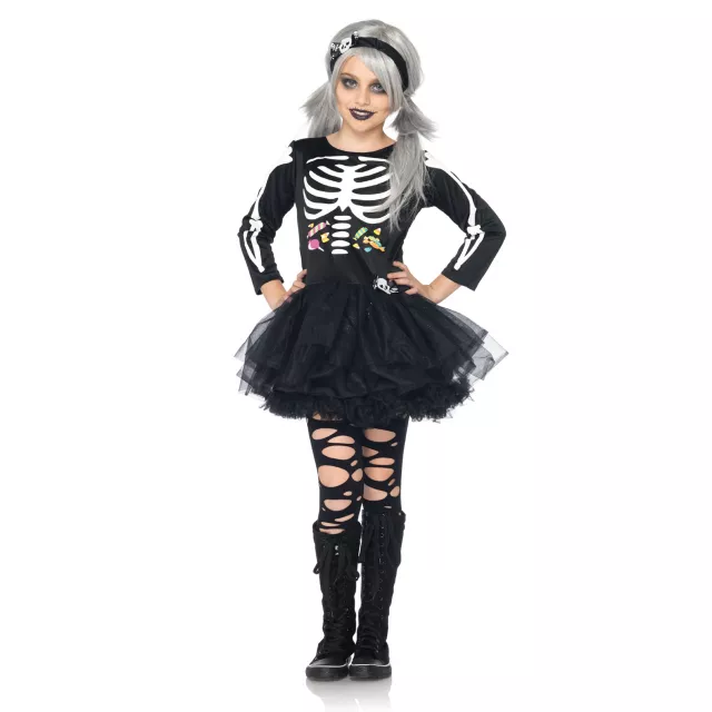 Make no bones about it - this Scary Skeleton girls costume is a super fun outfit. The skeleton print petticoat dress comes complete with bone detail and a matching headband that will have you kicking up your heels on Halloween.