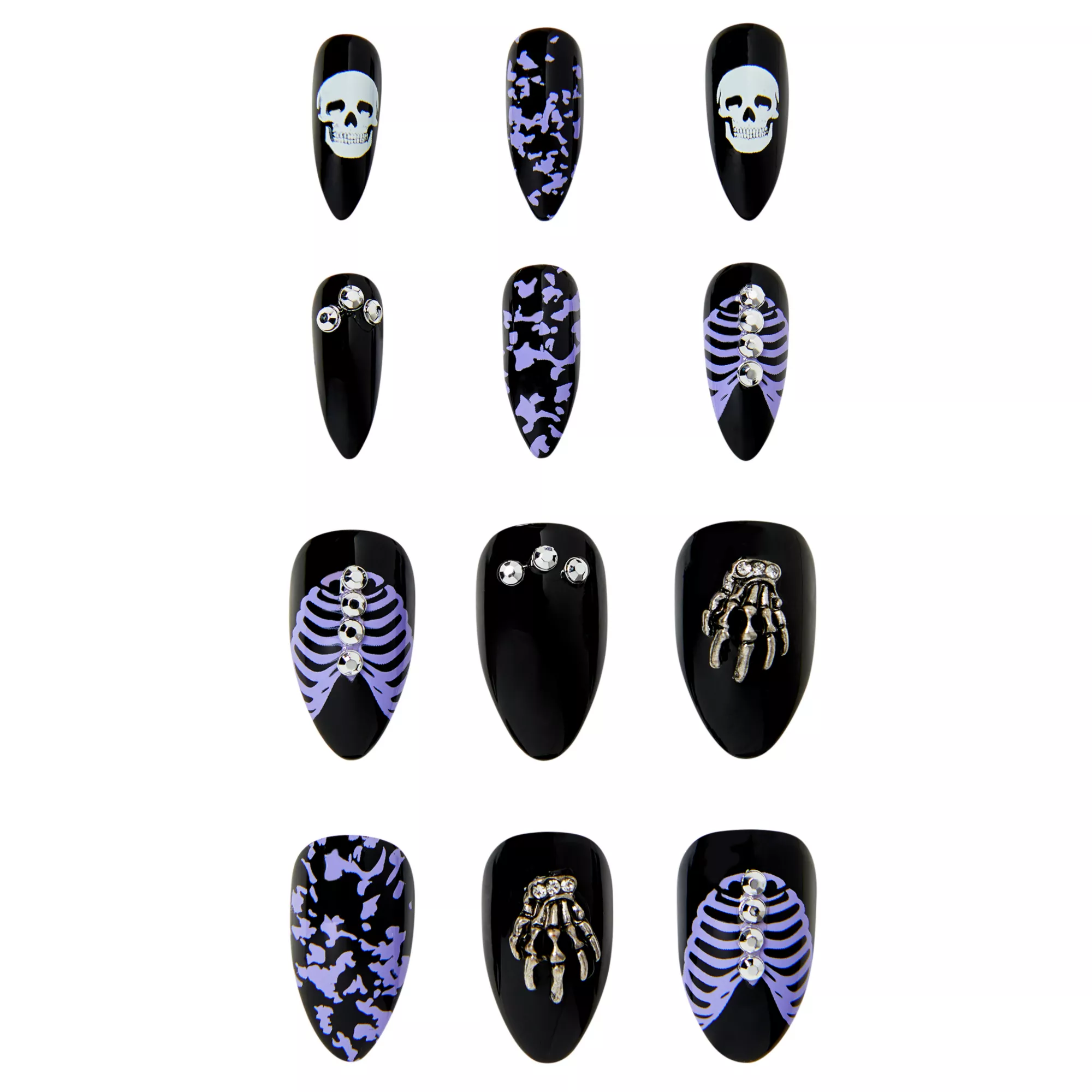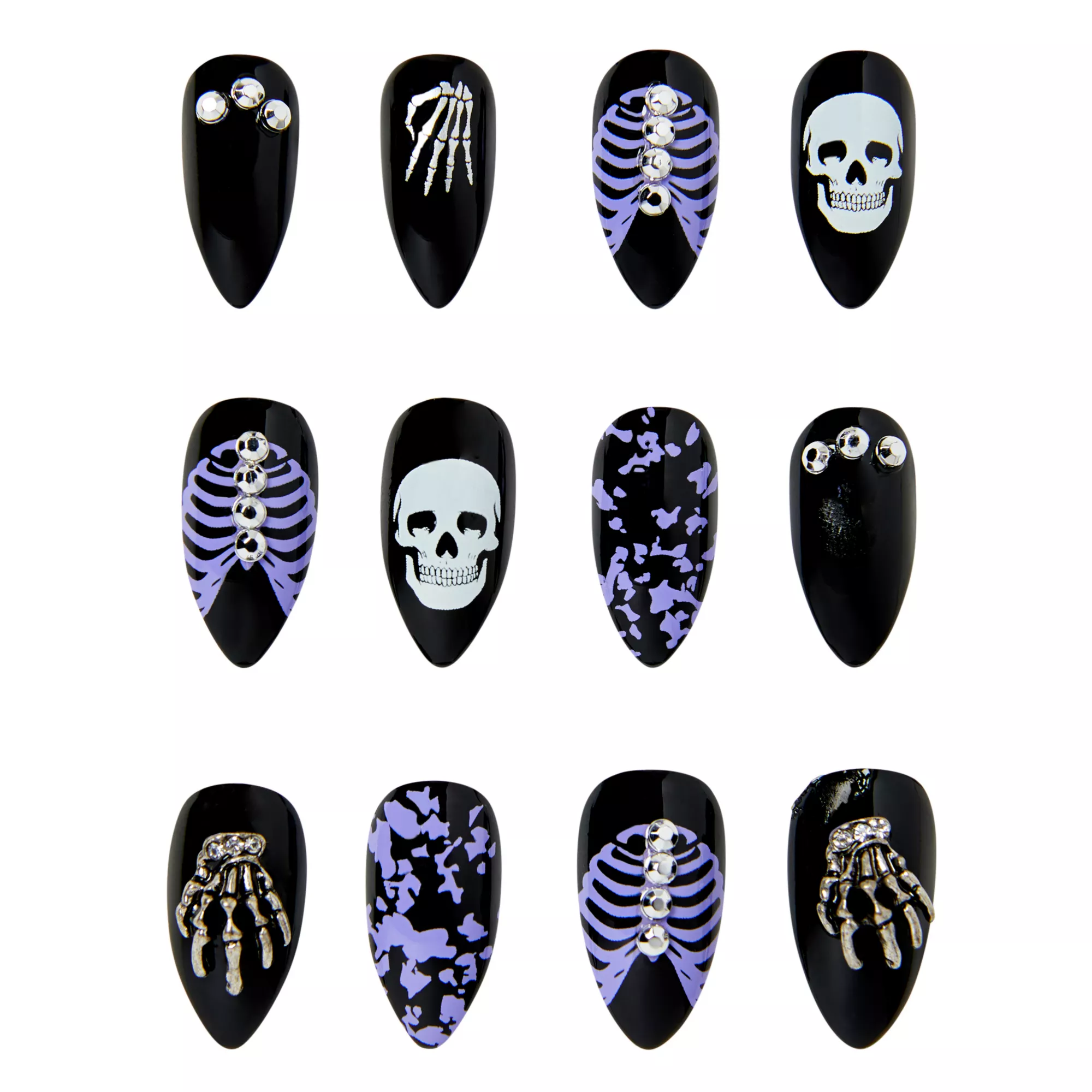 You'll love adding these skeleton nails to your costume this year. The purple, black, and silver detail will have you standing out in every room.