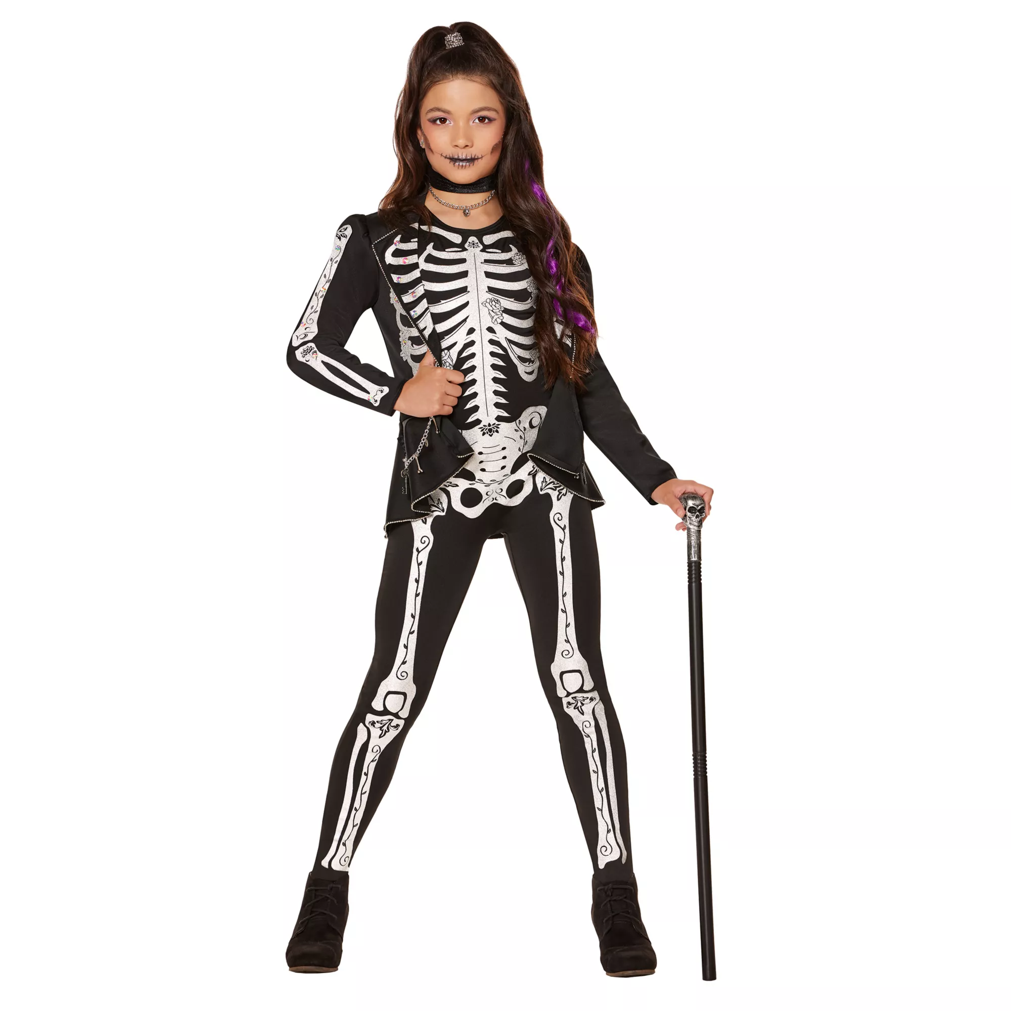 From our exclusive Signature Collection. Looking for the perfect skeleton costume? We're about to throw you a bone. This awesome skeleton suit costume includes a jacket, catsuit, choker necklace and staff, turning you into an undead nightmare. Scare the whole neighborhood this Halloween!