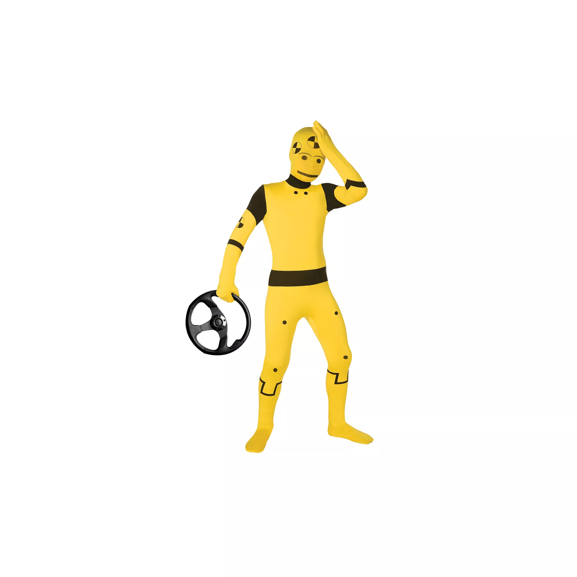 Watch out for moving vehicles on Halloween when you wear this Crash Test Dummy Skin Suit Child Costume. Have fun fooling drivers when they catch a glimpse of you in this yellow and black classic bodysuit. Just don't hang out in the middle of the road.