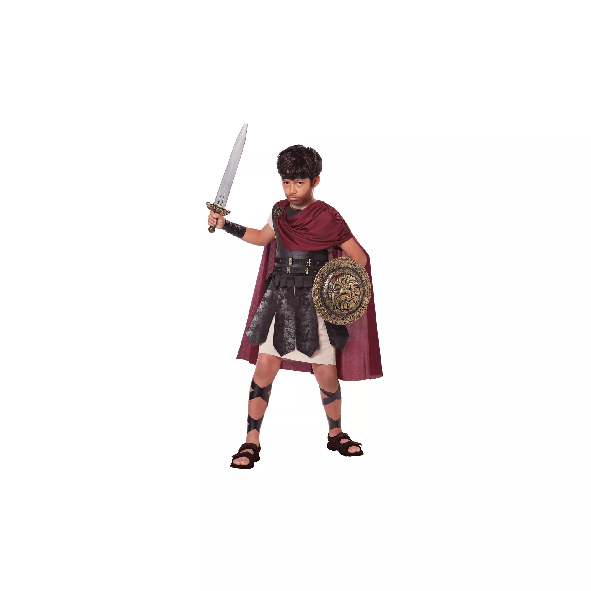 Be prepared to battle on Halloween when you wear the Spartan Warrior Child Costume. This highly detailed outfit comes complete with a tunic, body armor with belts and attached cape, medallion, wrist cuffs, leg ties and headbands.