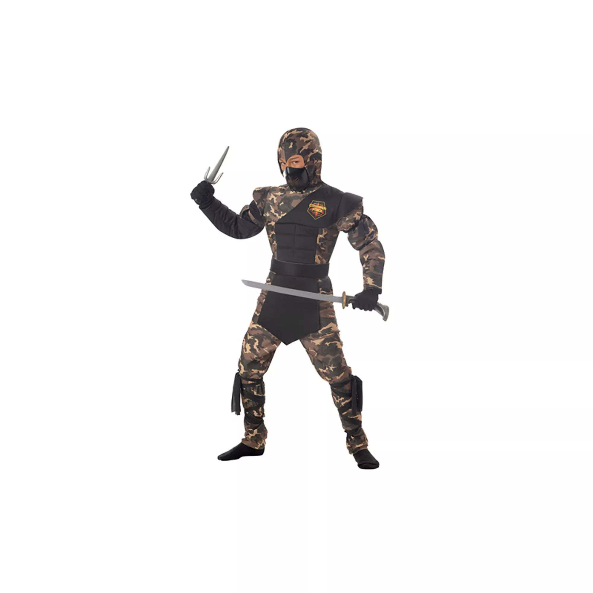 Practice your moves and sharpen your weapons because you'll have lots of candy to fight for on Halloween. Special Operations Ninja Child Plus Size Costume includes camouflage armor suit with pants and black ties. Protector belt and matching hood also included for your safety and disguise.