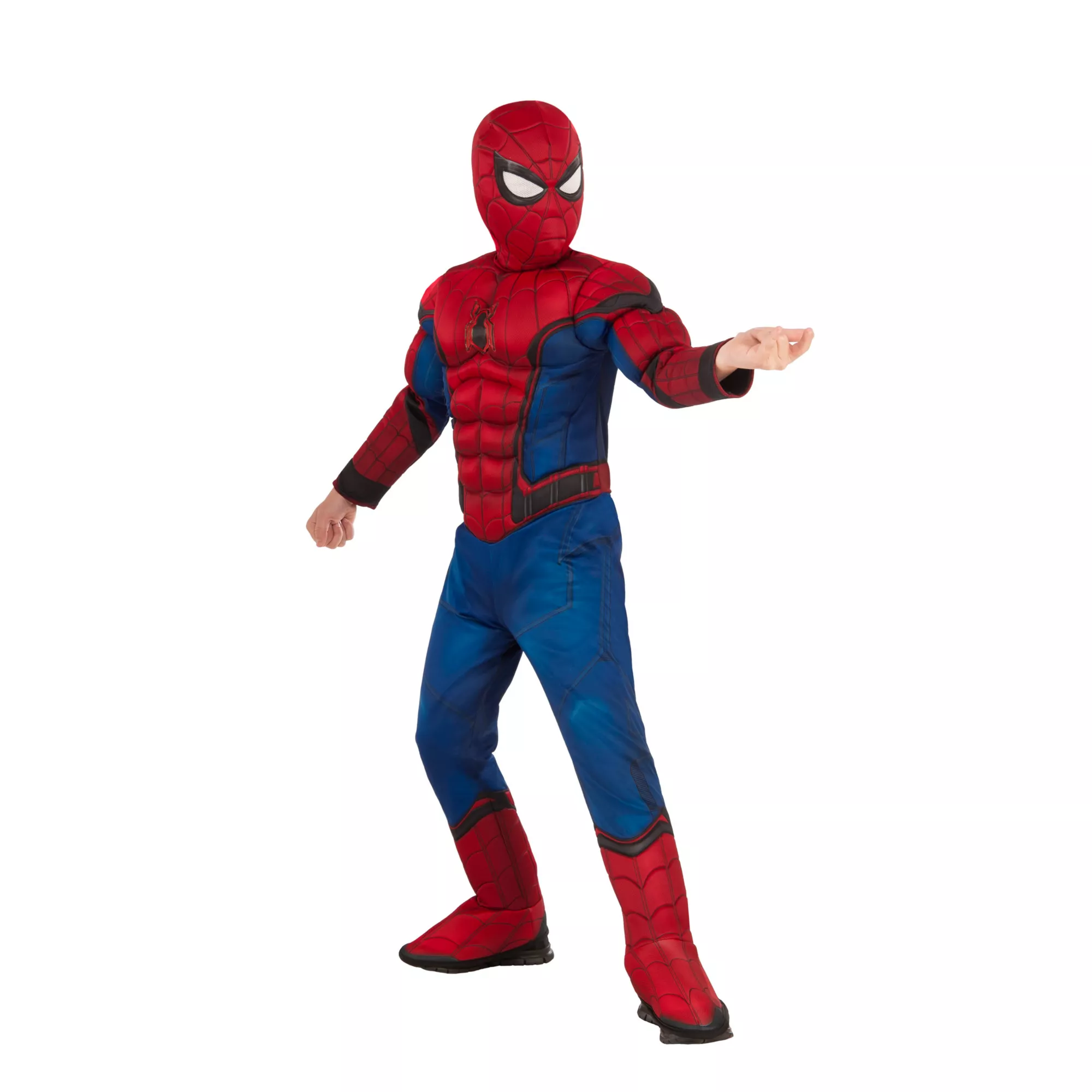 Spin webs around the neighborhood and help save the world when you wear this kids Spider-Man costume. Equipped with a padded fabric hood and molded spider icon, this muscle costume is inspired by the one Spidey wears in Captain America Civil War. Built by fast friend and teammate Tony Stark #teamironman, it’s no surprise that its technological advantages are a sharp departure from the original Peter Parker version. Swinging door to door rescuing candy from nefarious bowls has never been so easy!