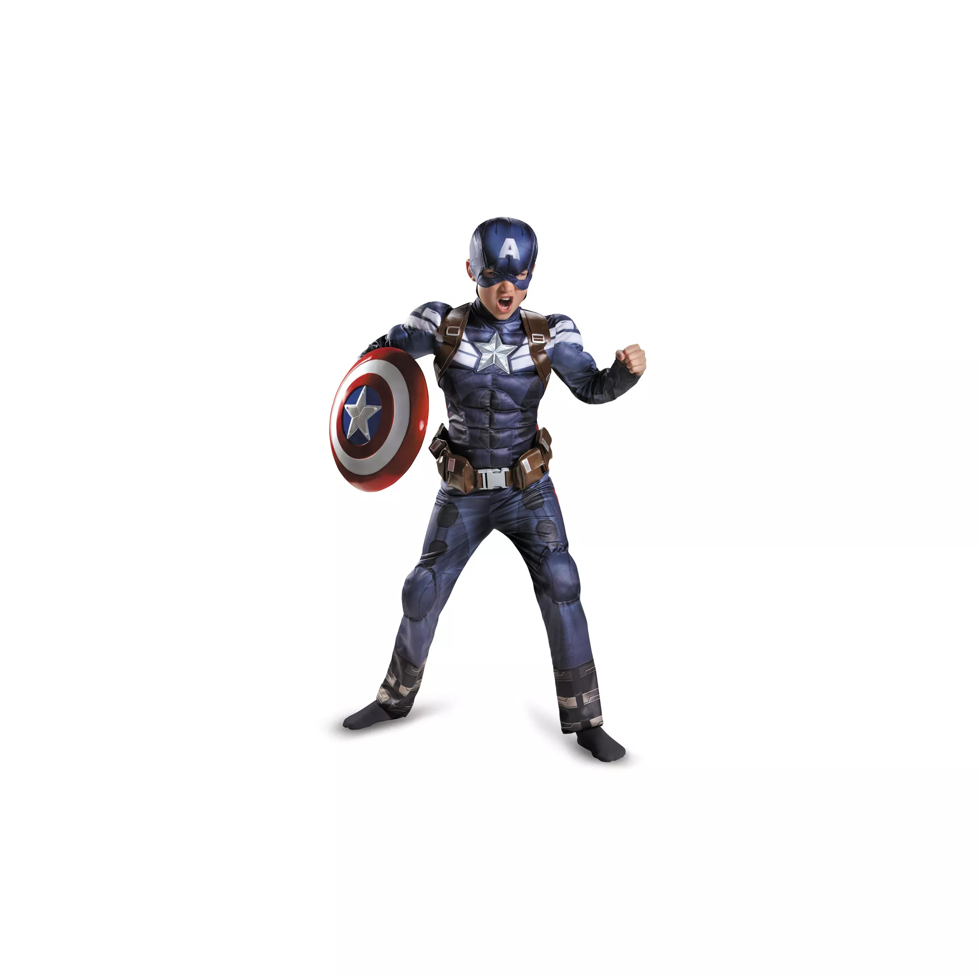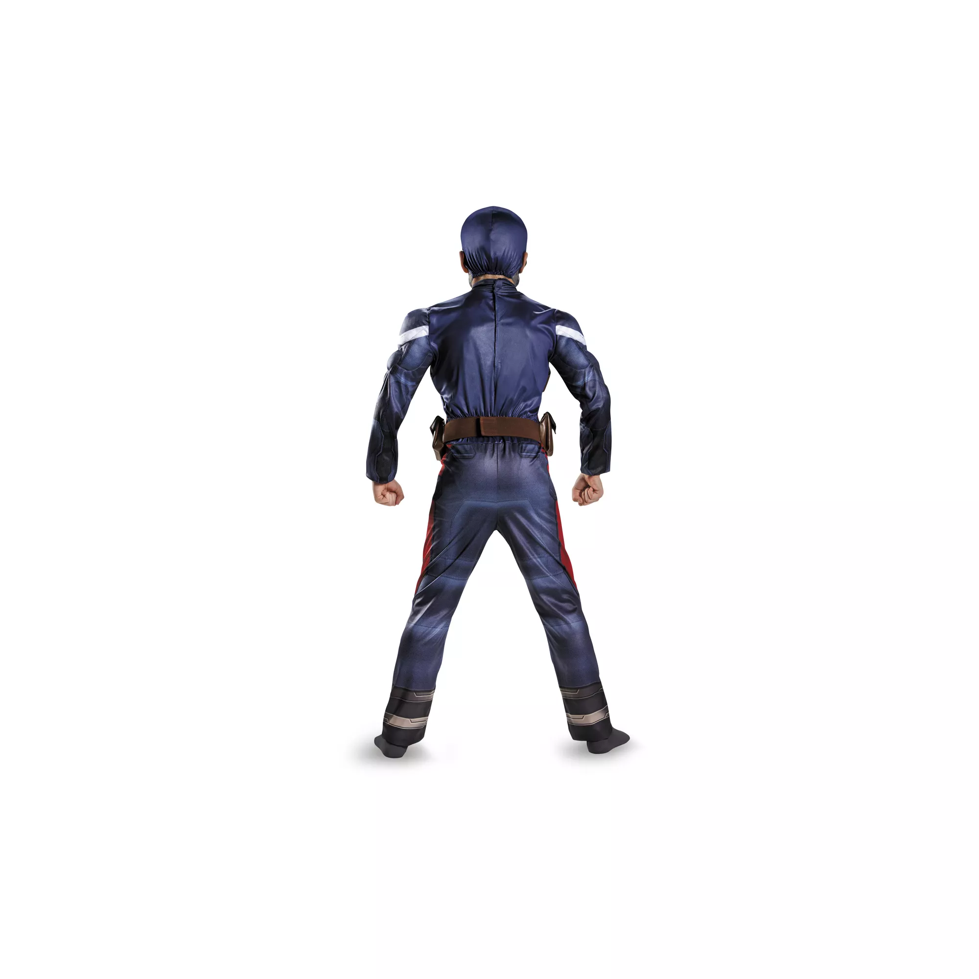 You will surely dominate Halloween when you decide to wear the officially licensed Captain America Stealth Child Costume. This blue and white jumpsuit features muscle chest details and comes complete with a brown belt and matching character headpiece.