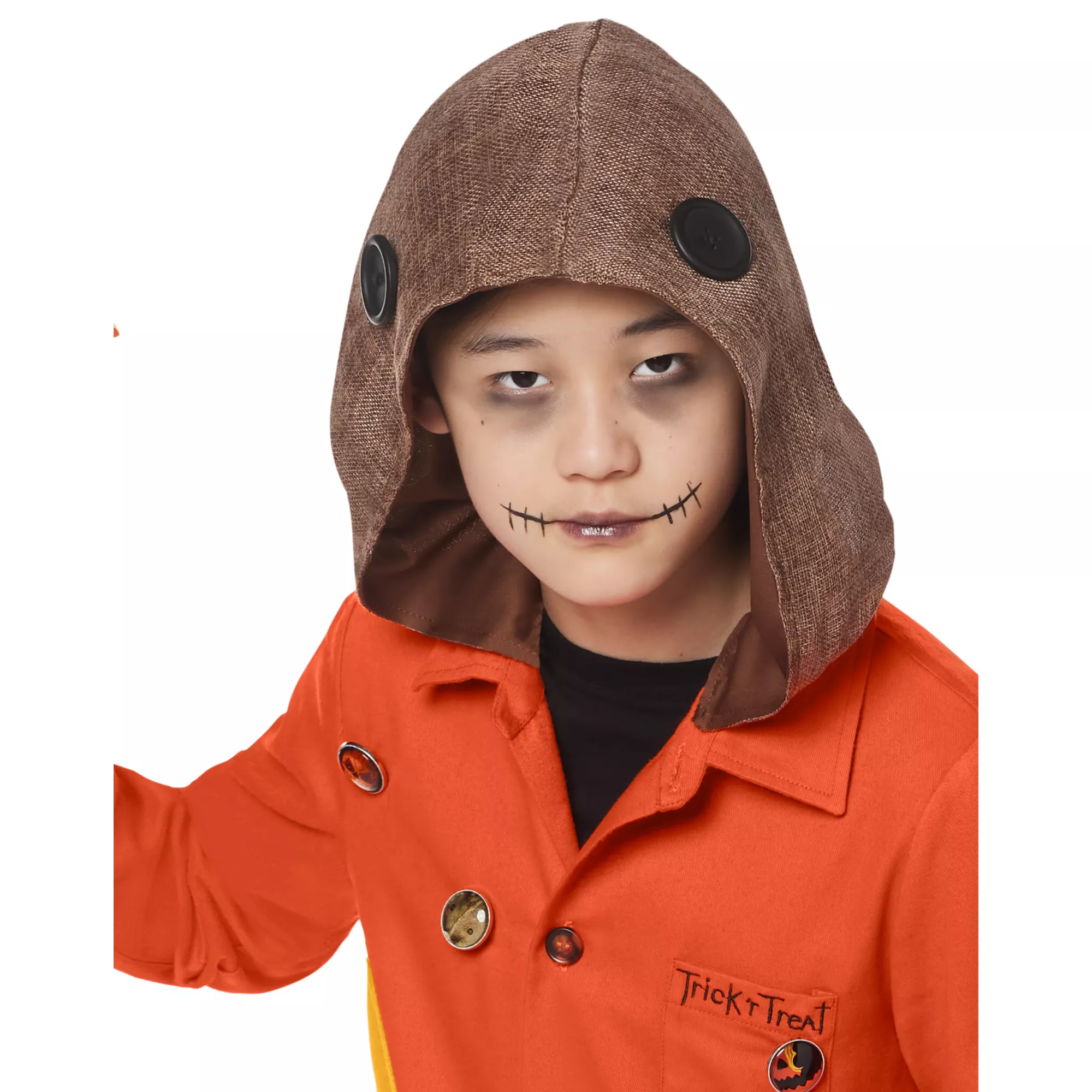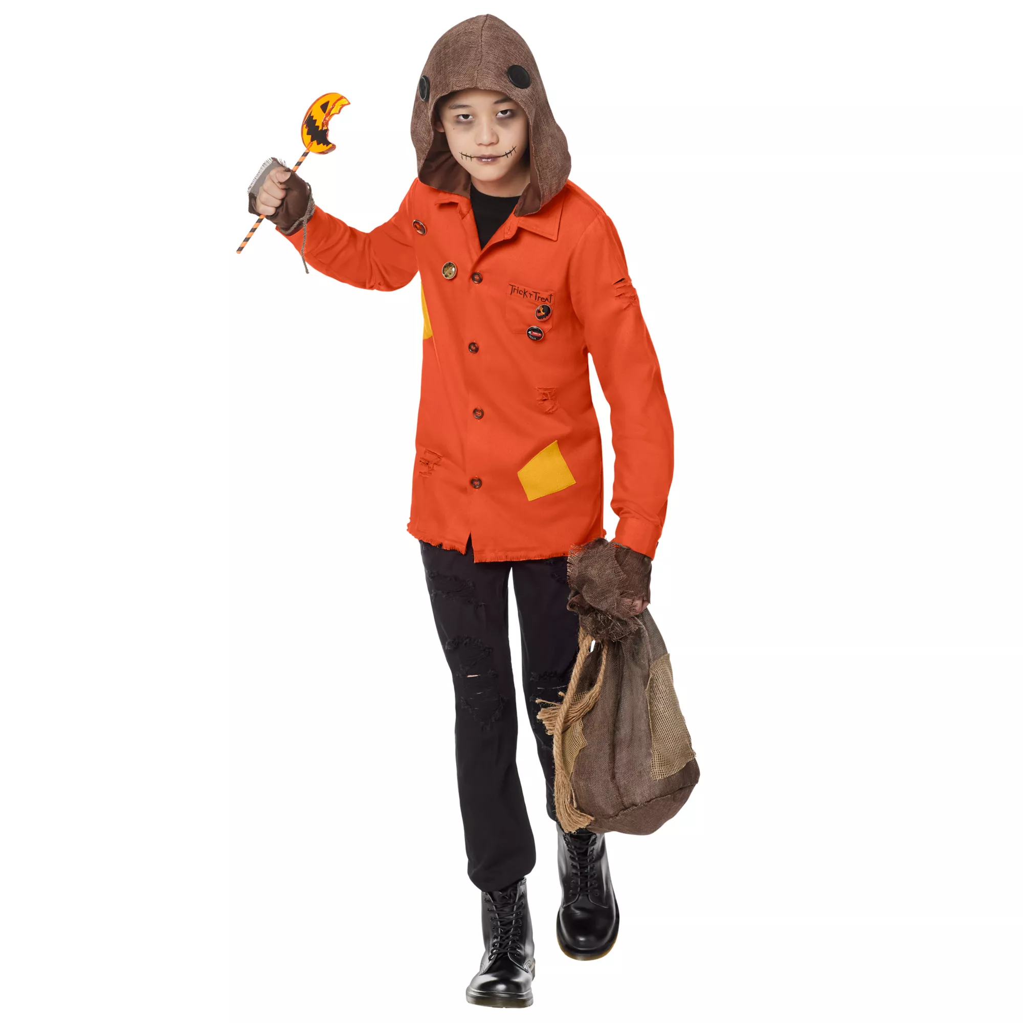 Look straight out of your favorite horror movie in this official Trick 'r Treat Costume Kit! With its orange shirt with detachable hood and authentic-looking gloves, you'll look ready to terrorize your town this Halloween. Gie yourself a fearfully memorable look this year when you put these on!