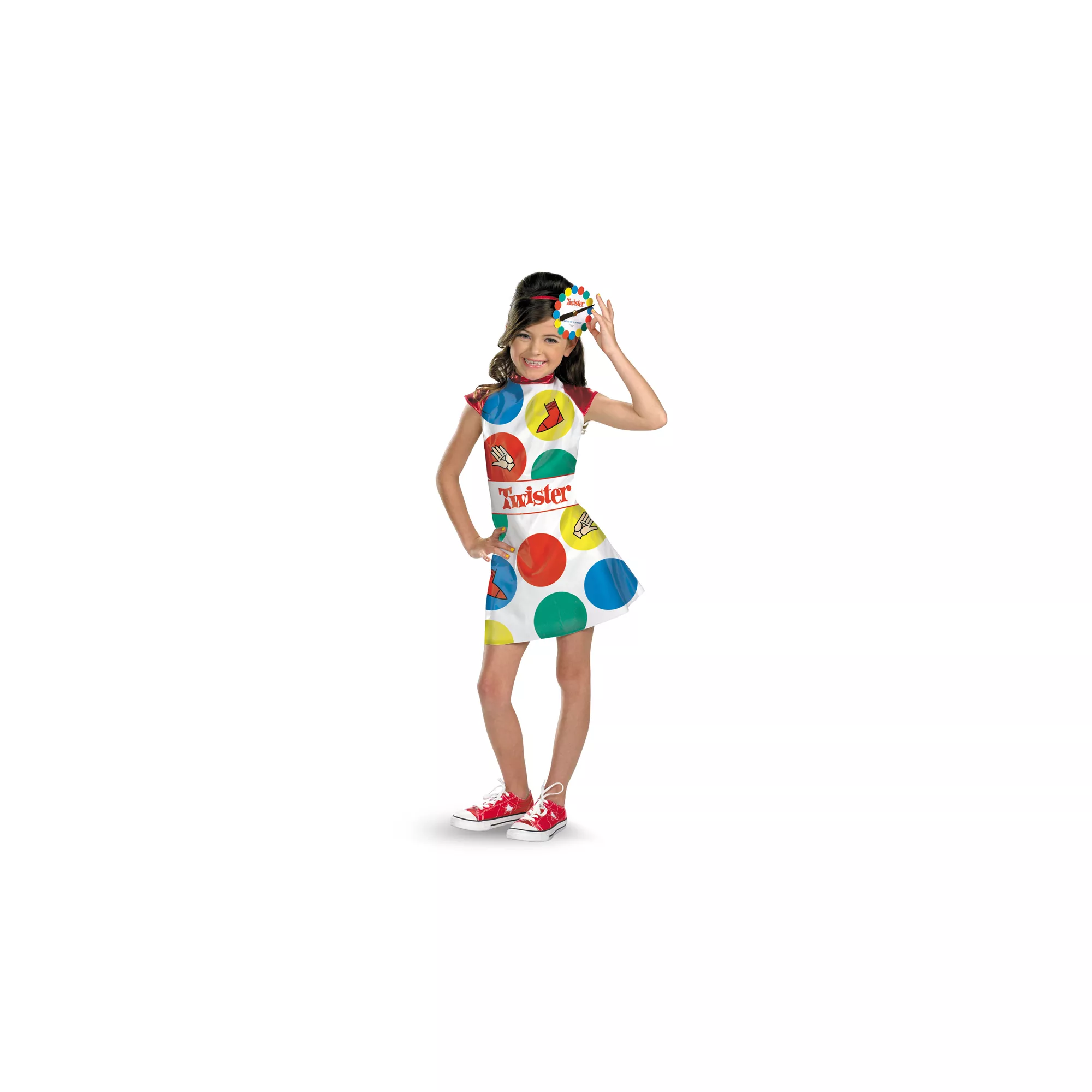 Play the game any way you want to in this cute and officially licensed Twister girls costume. The clever headband is styled like a Twister spinner and the 100% polyester dress is the board. Twist and shout because when you wear this outfit everyone's a winner.