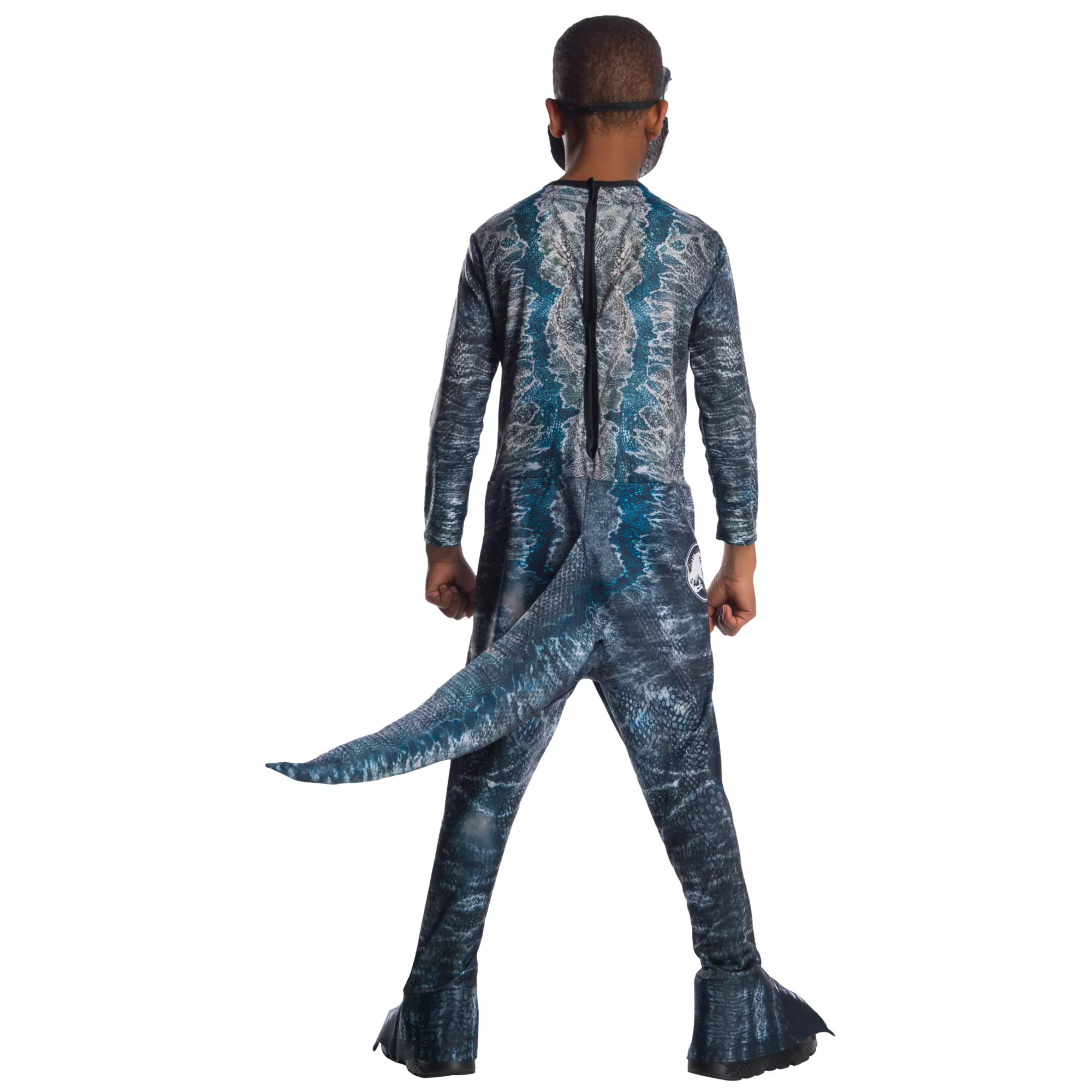 Let out your best roar and show your dominance when you dress up in this officially licensed Velociraptor costume. This deadly dinosaur features a scaly gray and blue jumpsuit with attached shoe covers, a stuffable tail, and a green –eyed dinosaur mask to finish off this easy to wear costume. This Velociraptor costume is great for fans of the movie as well as any other folks looking to become an intimidating force of nature this Halloween.