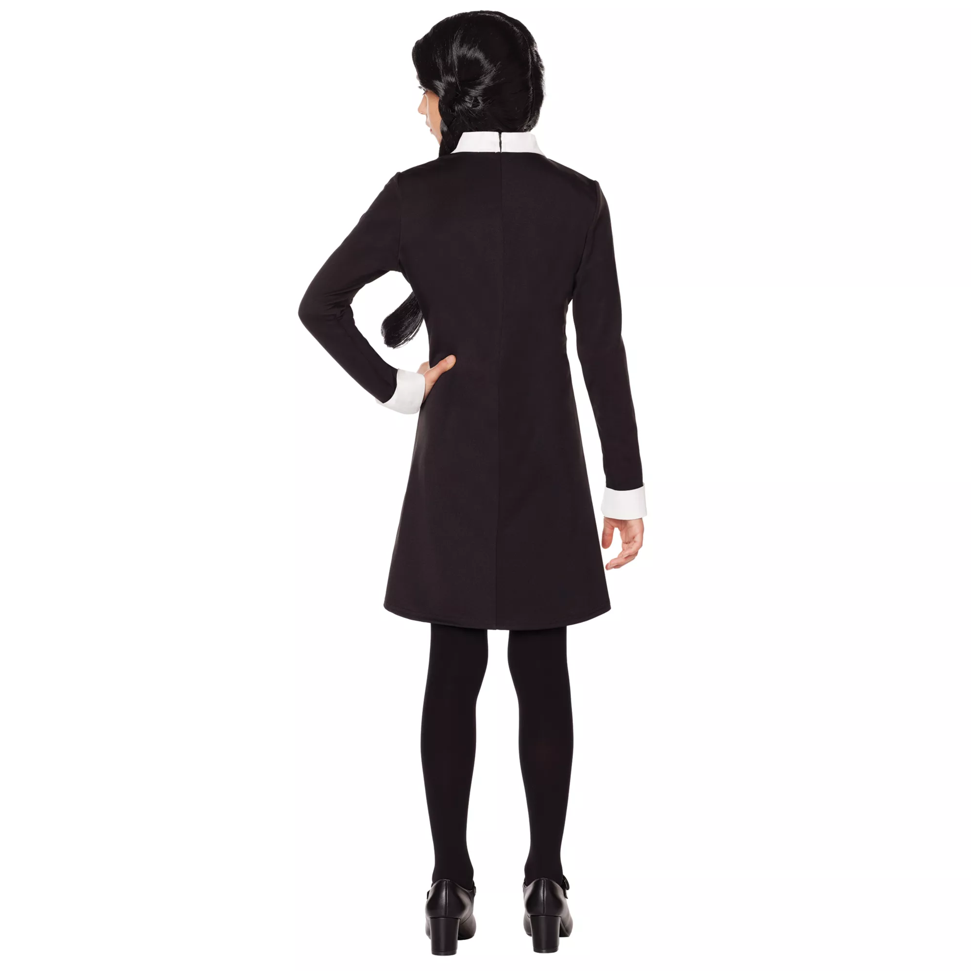 Dress up as your on-screen favorite with this officially licensed Wednesday Addams Costume. This costume includes a dress and a wig that'll have you looking just like this fan-favorite character.