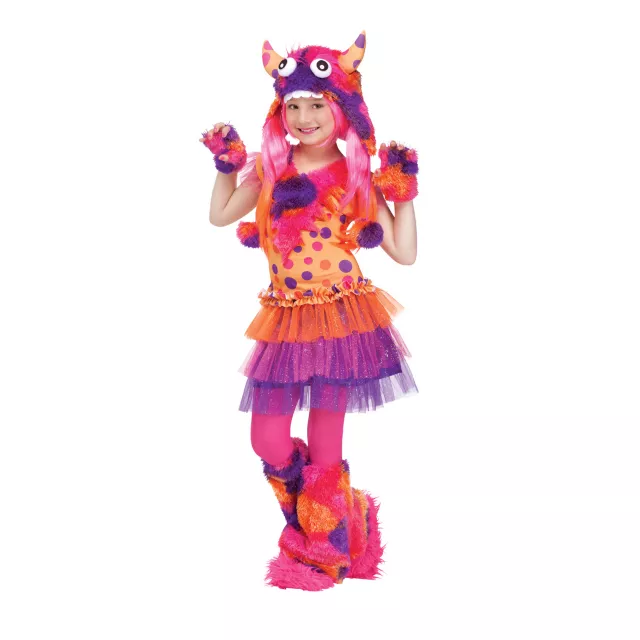 Get goofy - your costume requires it when you wear this Wild Child Monster Girls Costume. In this furry polka-dot tutu dress with waist ruffle, furry mitts, boot covers and crazy character hood, you'll be ready to act weird.