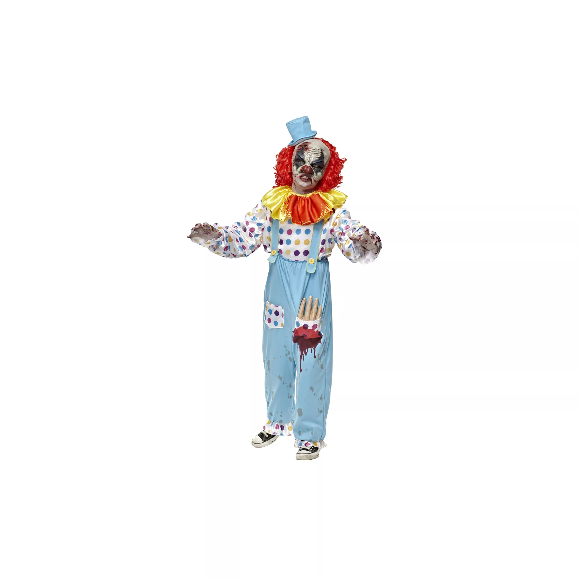 Welcome to the world's scariest sideshow when you don this mortifying Wriggly Mortie Child Clown Costume. The shirt of this clown costume comes complete with a pair of matching pants with a severed hand in the pocket along with a creepy clown mask, a hat and red clown hair.