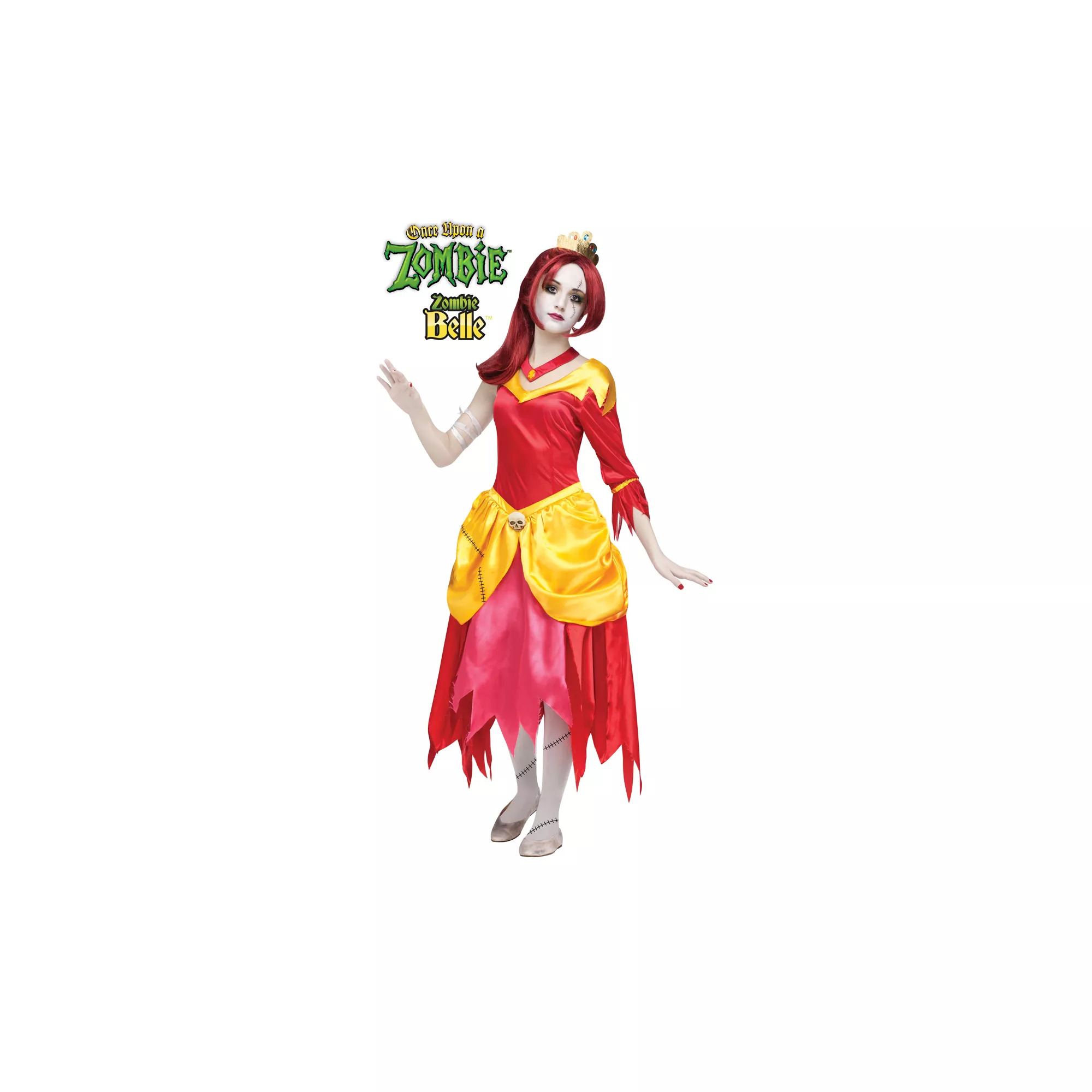 You're still a beauty even as a zombie in the Officially Licensed Once Upon A Zombie Belle Child Costume. Features a gorgeous red and yellow gown with skull and stitching details, a crown and jeweled choker.