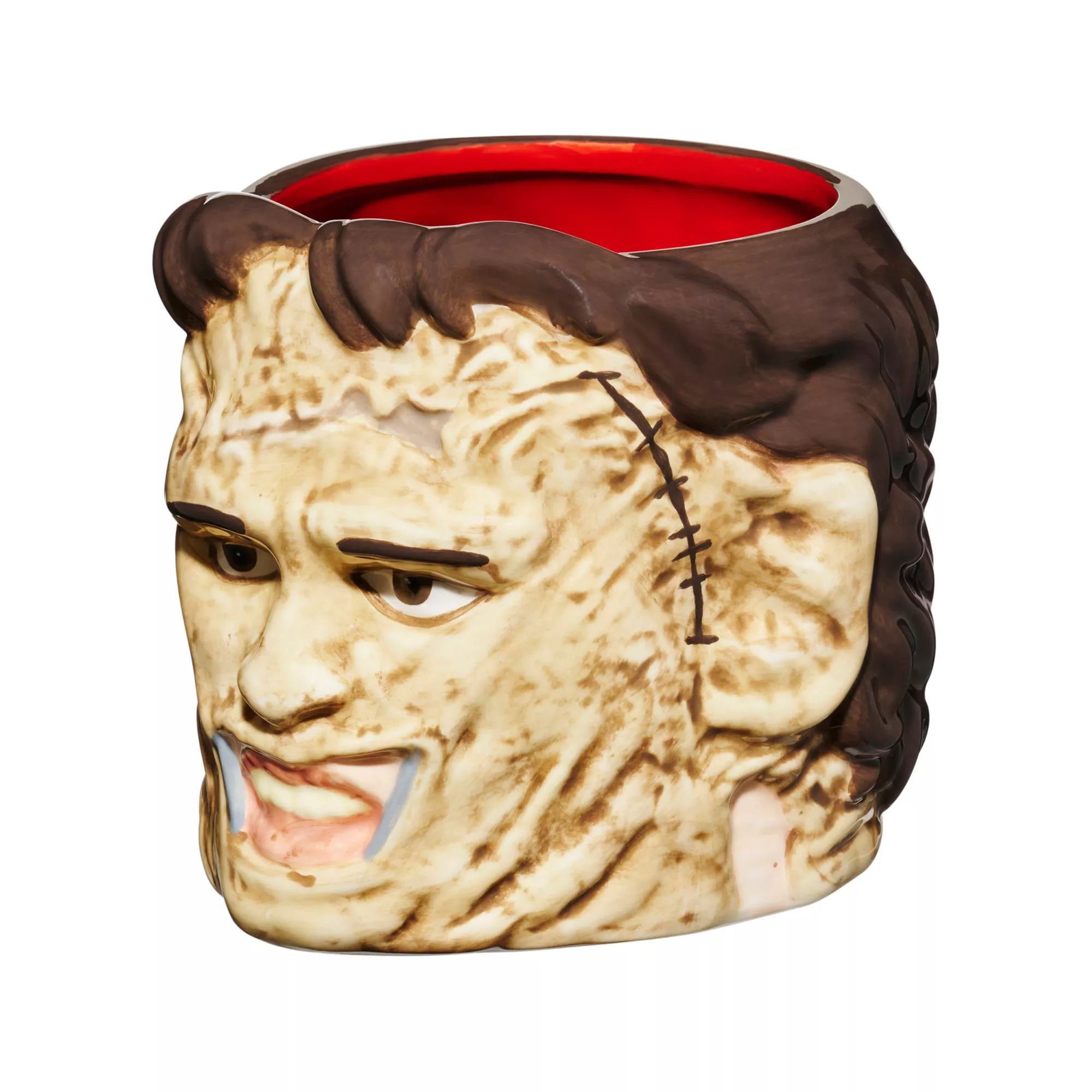 Is someone cutting down a tree? Nope, that's just Leatherface creeping up in the distance. Make it clear you're the ultimate Texas Chainsaw Massacre fan when you add this officially licensed Leatherface Molded Coffee Mug to your drinkware collection.