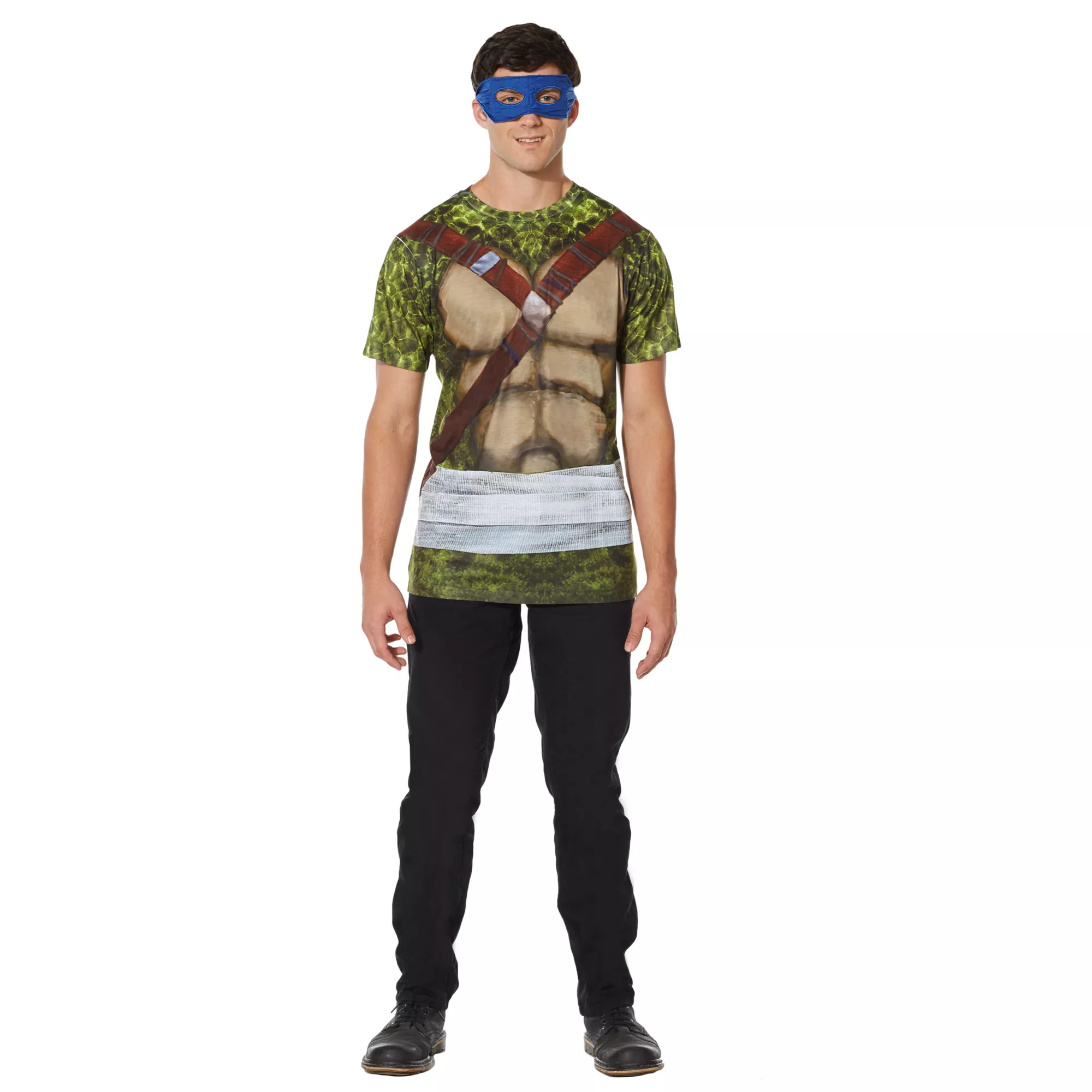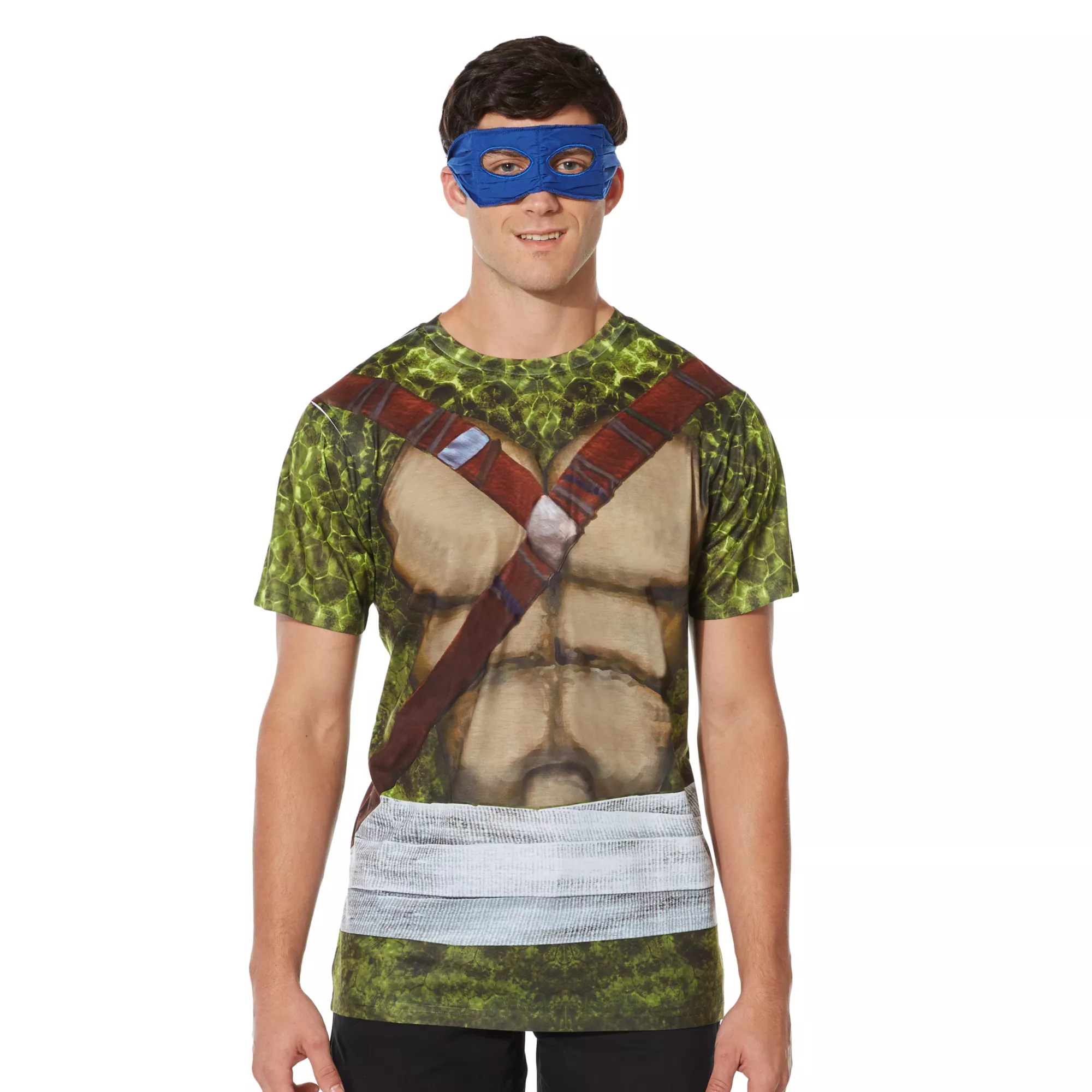 Battling Shredder, Bebop, and Rocksteady will be simple in this officially licensed Leonardo shirt! The costume tee is designed to look just like the blue masked brother of the Teenage Mutant Ninja Turtles! So grab your trusty katanas and hit the streets to save New York City!