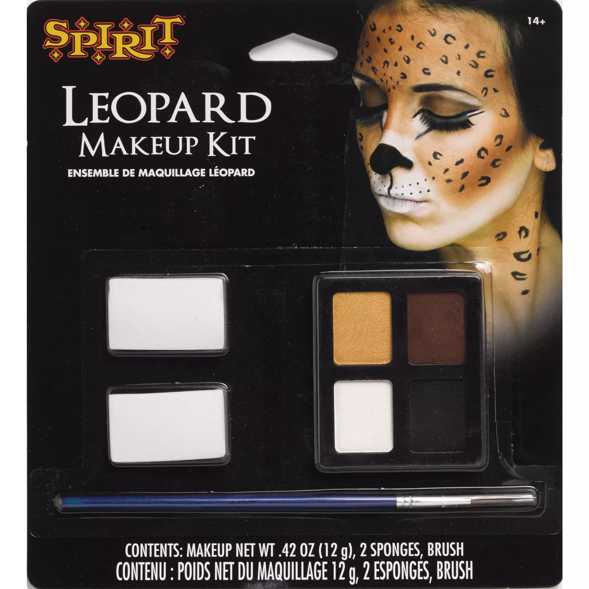 Give your self spots of any size with this Leopard Makeup Kit! The makeup kit includes black, brown, white, and gold makeup as well as 2 sponges and a brush. With this kit, you will really transform into a leopard this Halloween!