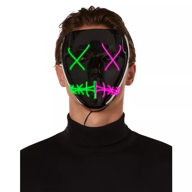 Light-Up EL Wire Green and Purple Stitched Half Mask