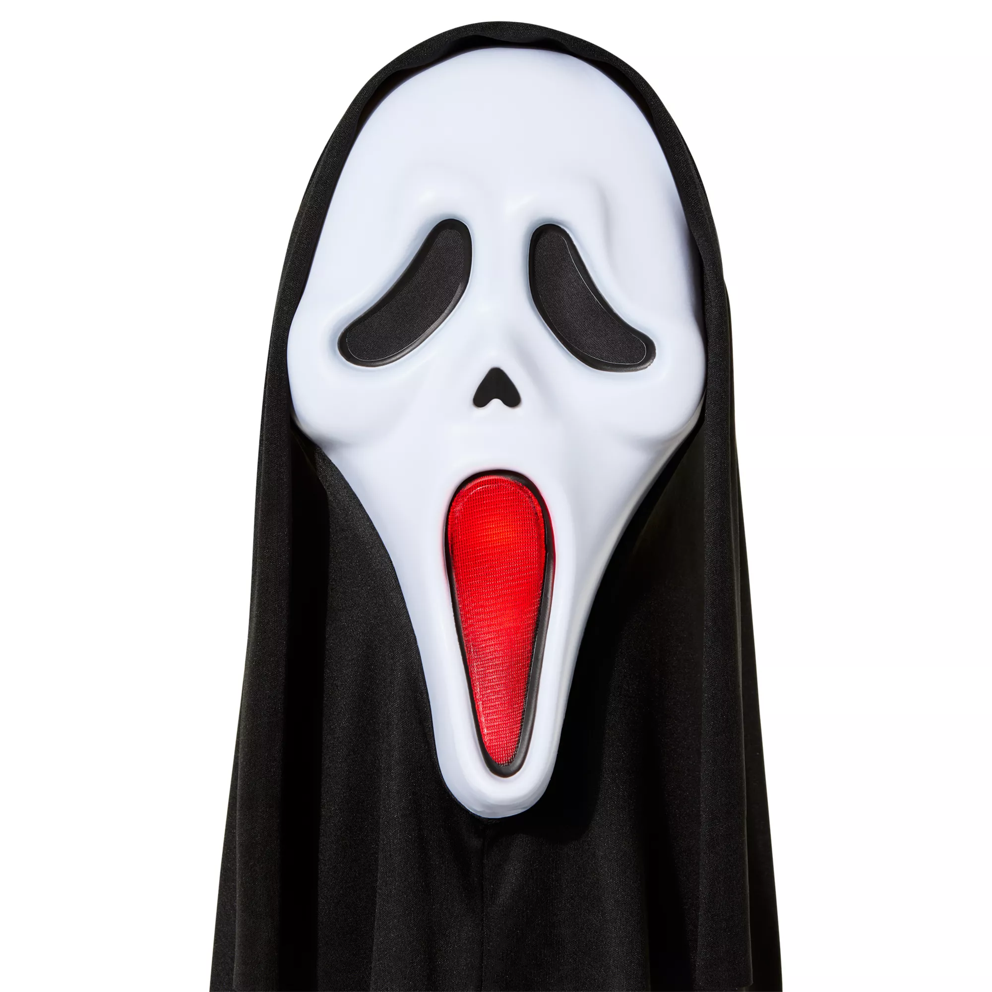 Ghost Face® just got even more terrifying with a light-up mouth feature! You'll be completely anonymous in this hooded mask complete with hollow, sunken eyes and a glowing mouth. Try not to scream!