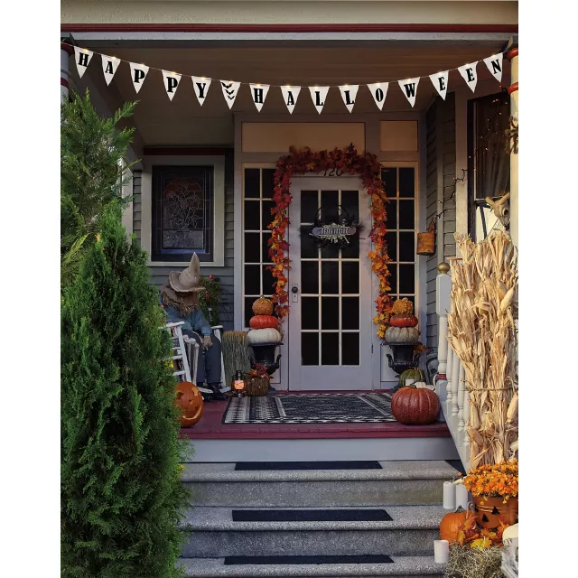 Add the finishing touch to your Halloween party decorations when you hang up this light-up Happy Halloween banner! This 13-foot banner features each letter on its own separate triangle, with a spider in the center to space out the two words, making it great for any spooktacular occasion!