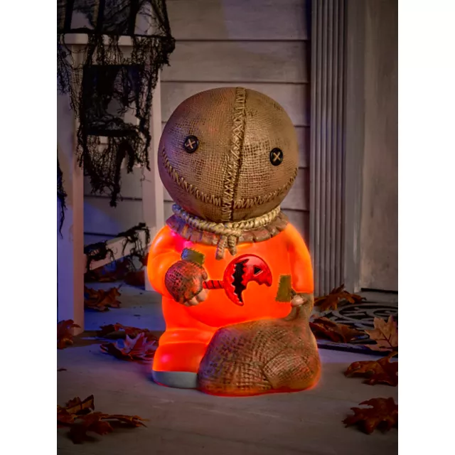 Welcome trick-or-treaters with a scary surprise using this officially licensed Sam Trick 'r Treat Light-Up Porch Buddy! Sam will make sure your guests are following all of the rules of Halloween with a glowing interior that adds an extra layer of spookiness to your porch or entryway.