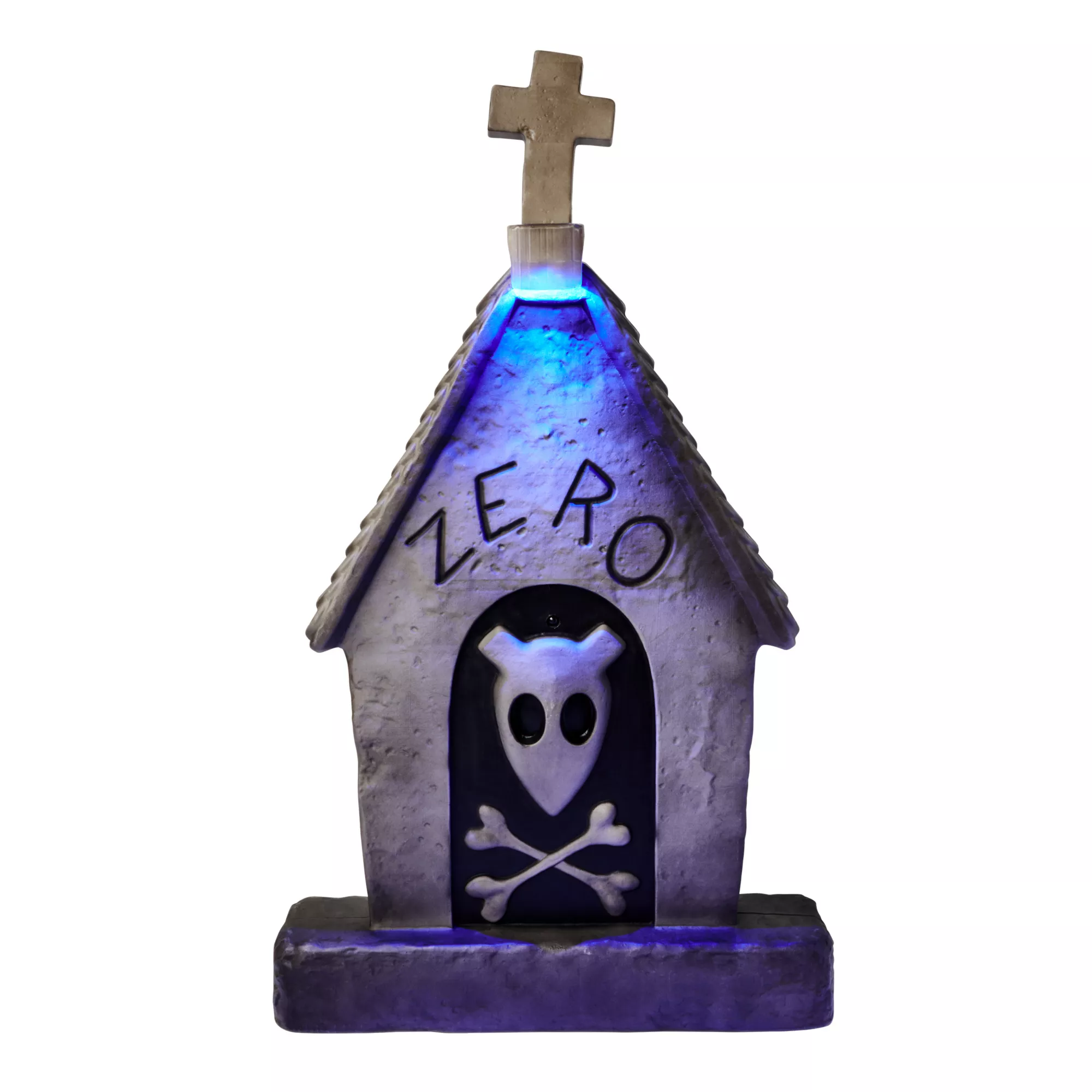 Here lies a man's best friend. Honor your favorite character from The Nightmare Before Christmas with this officially licensed Light-Up Zero Tombstone. This decorative tombstone features barking noises and has eerie blue LED lights perfect for any graveyard setting.