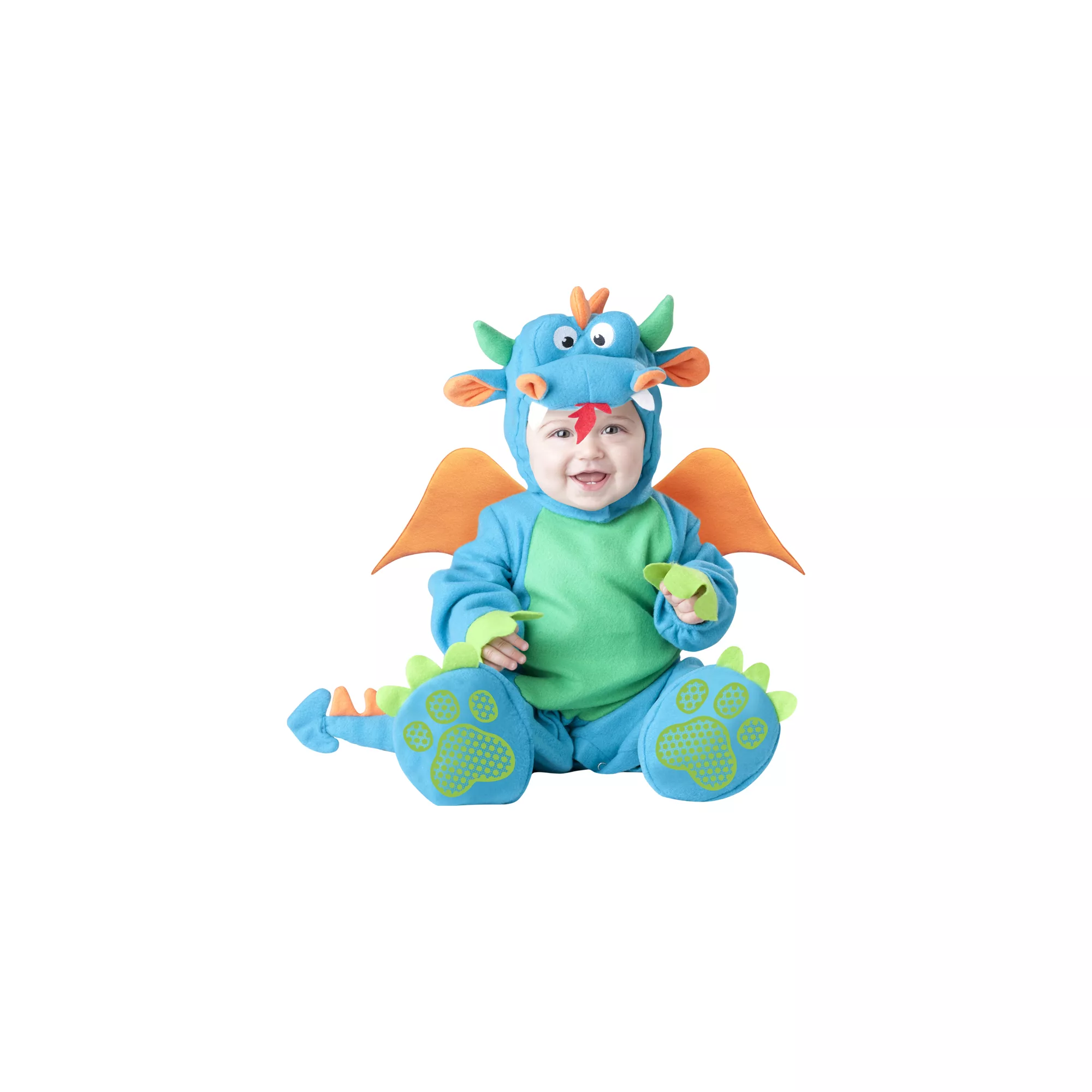 Everyone will be cooing over this fiery friend. The Lil Dragon Toddler Costume is adorable for any fantasy fiend; this costume features hood with horned ears and a blue and green jumpsuit with orange wings.