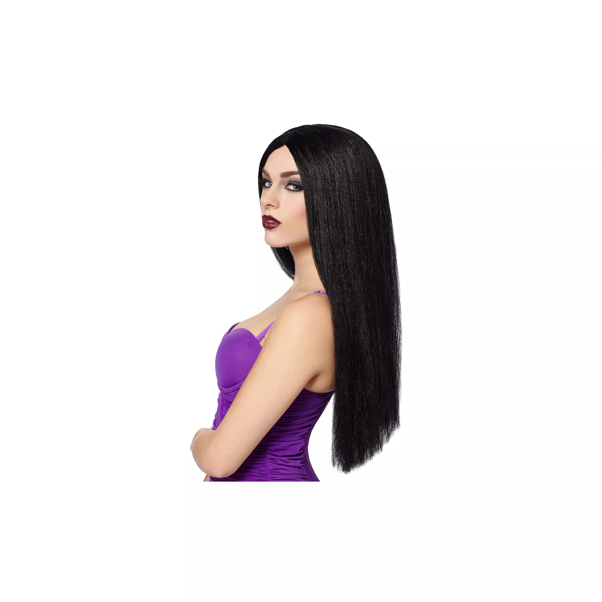 Stir your bubbling cauldron in style this Halloween in a Long Black Witch Wig. Perhaps the result of one of your many curses, this madly attractive black polypropylene costume wig seems to have a mind of its own. Get that feeling of wind in your hair with a super-sonic Witch Broom, sold separately.