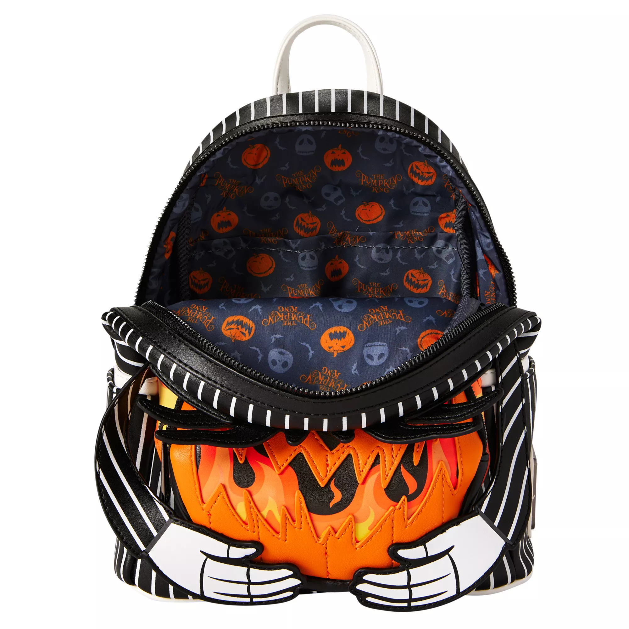 Carry around your favorite skeleton with this officially licensed Pumpkin King Mini Backpack. The Pumpkin King shines bright as the backpack lights up, bringing Jack Skellington's charm to life!