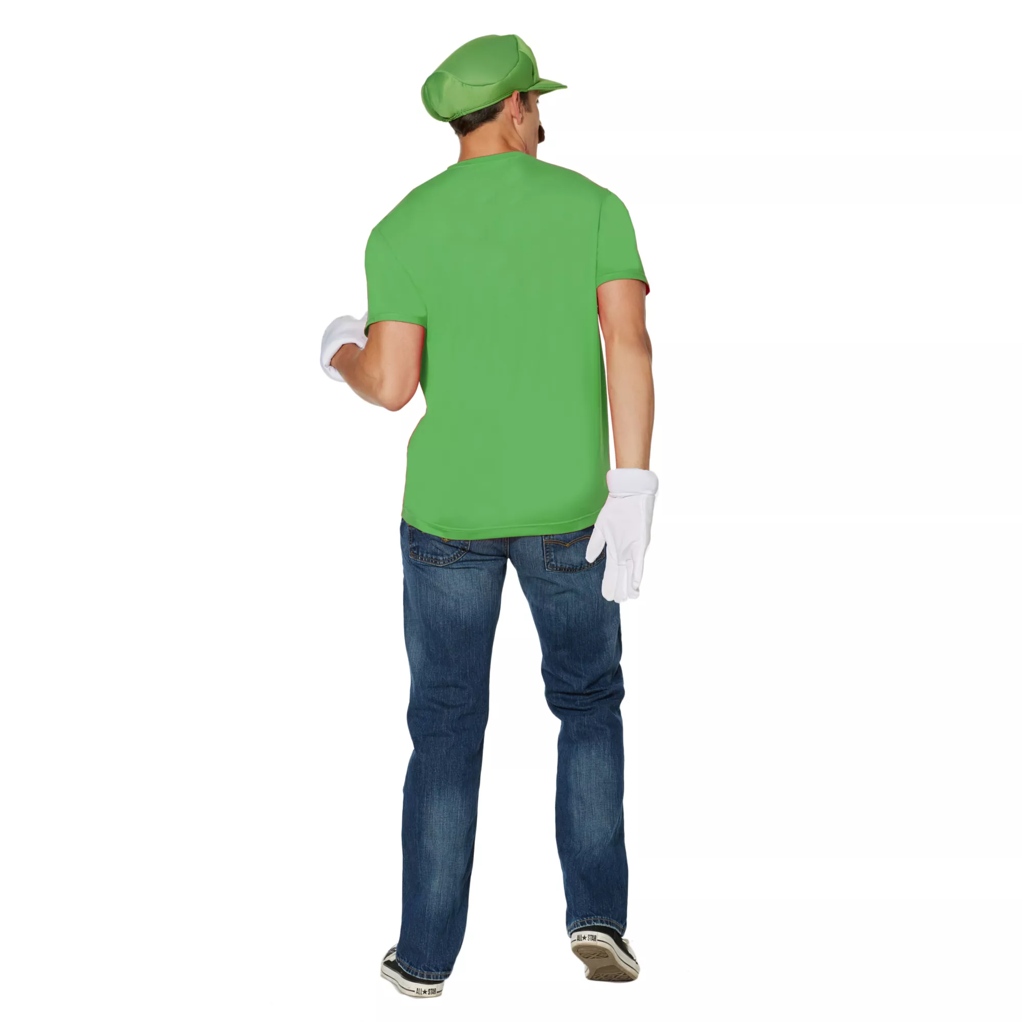 Get together with Mario and look the part of his sidekick when you wear the officially licensed Mario Bros. Luigi Kit. This kit contains a green hat with "L" on it, white gloves and a black mustache.