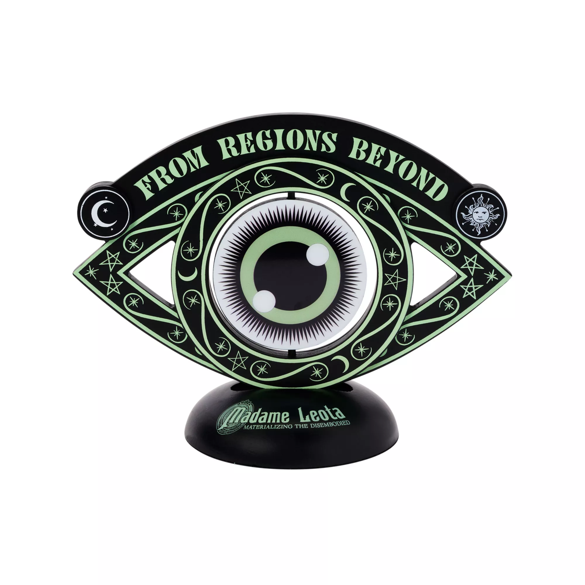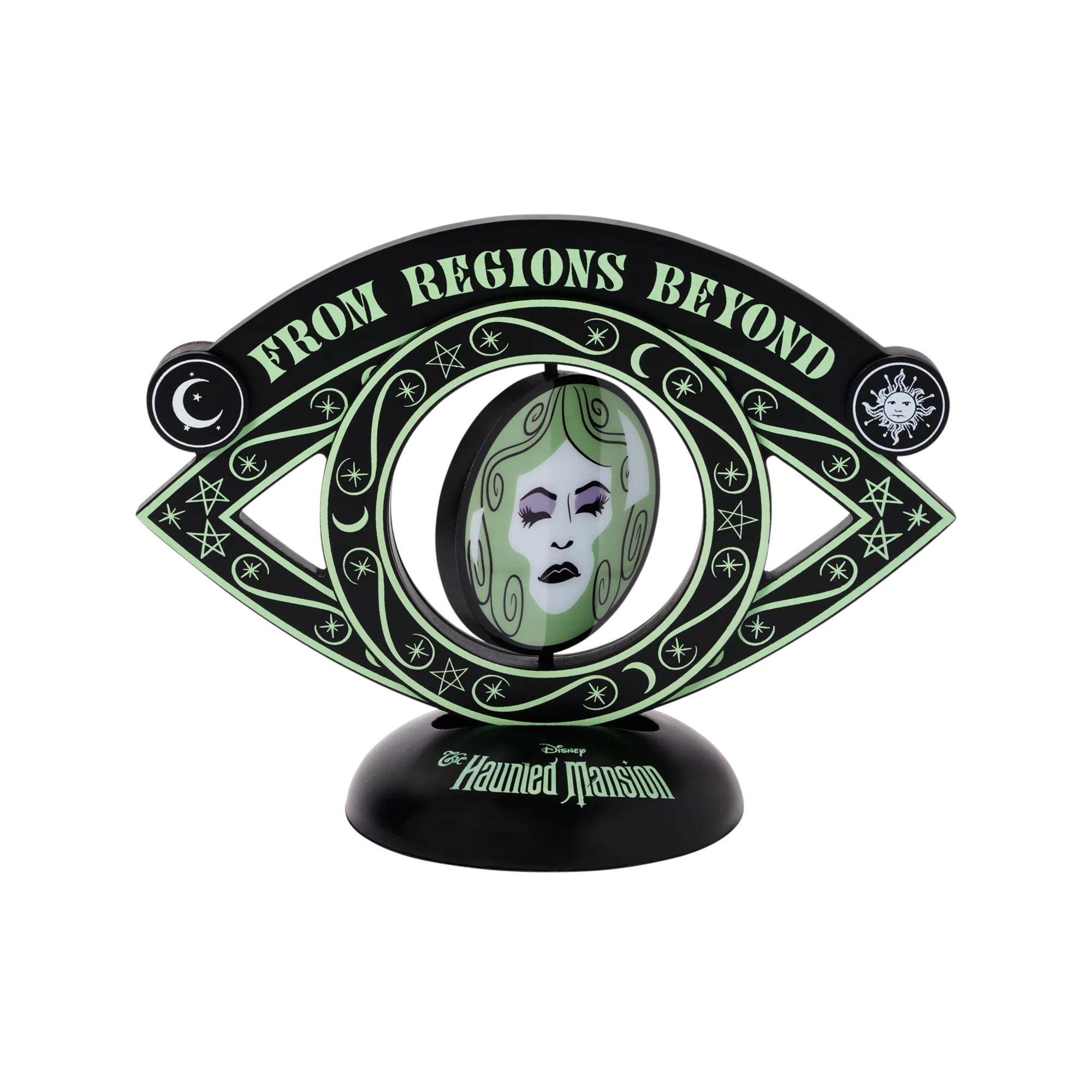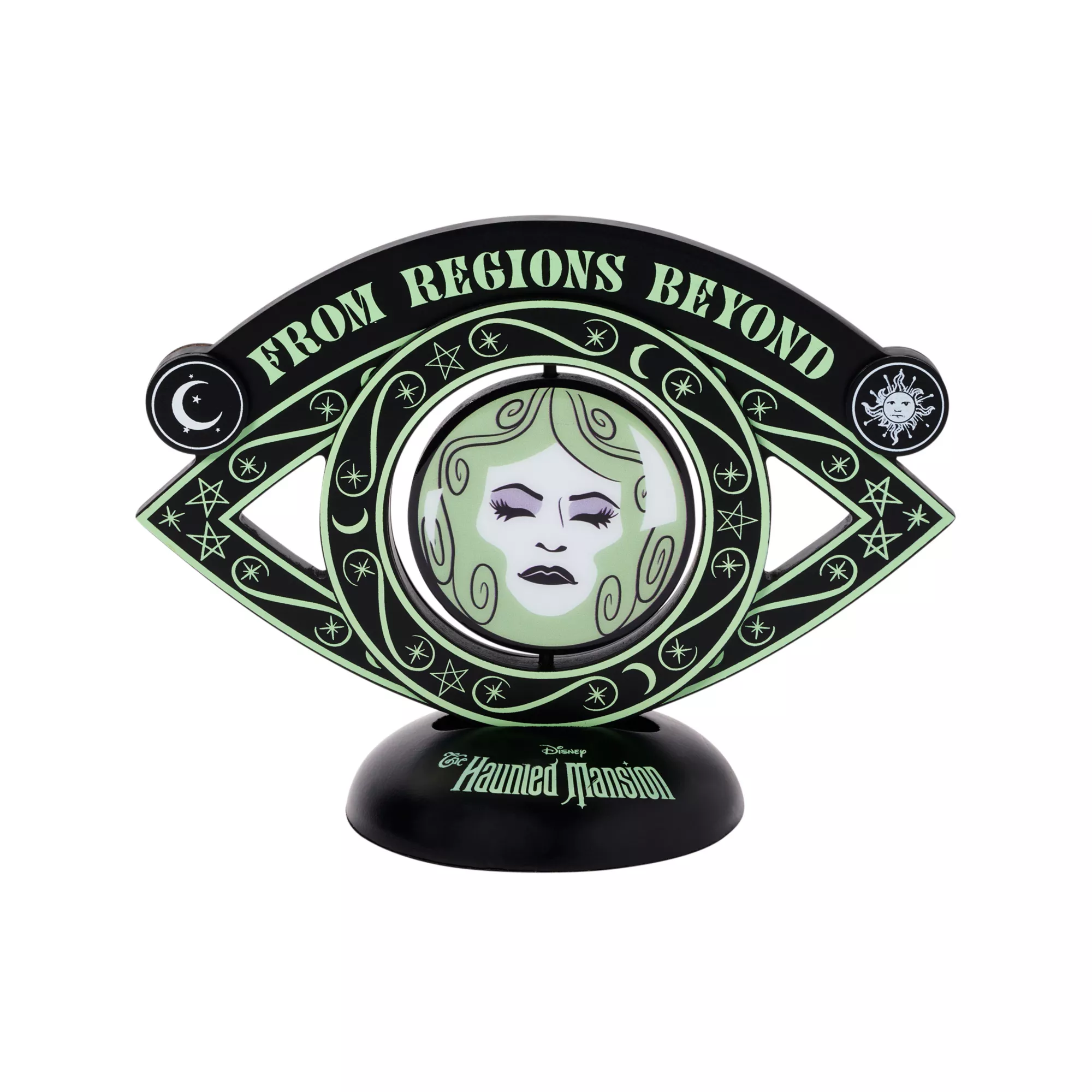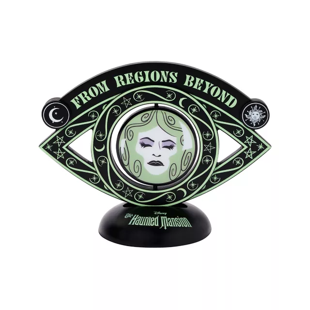 Welcome, foolish mortals! Show your love for your favorite Disney attraction with this eye-catching sign! This officially licensed piece features Madame Leota, an iconic character from The Haunted Mansion, surrounded by enchanting celestial detailing. With its spinning eyeball design element, this decoration will always be able to keep an eye on you.