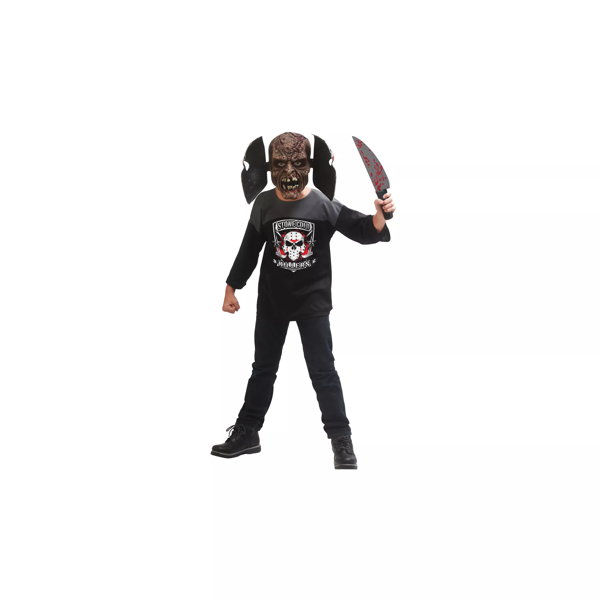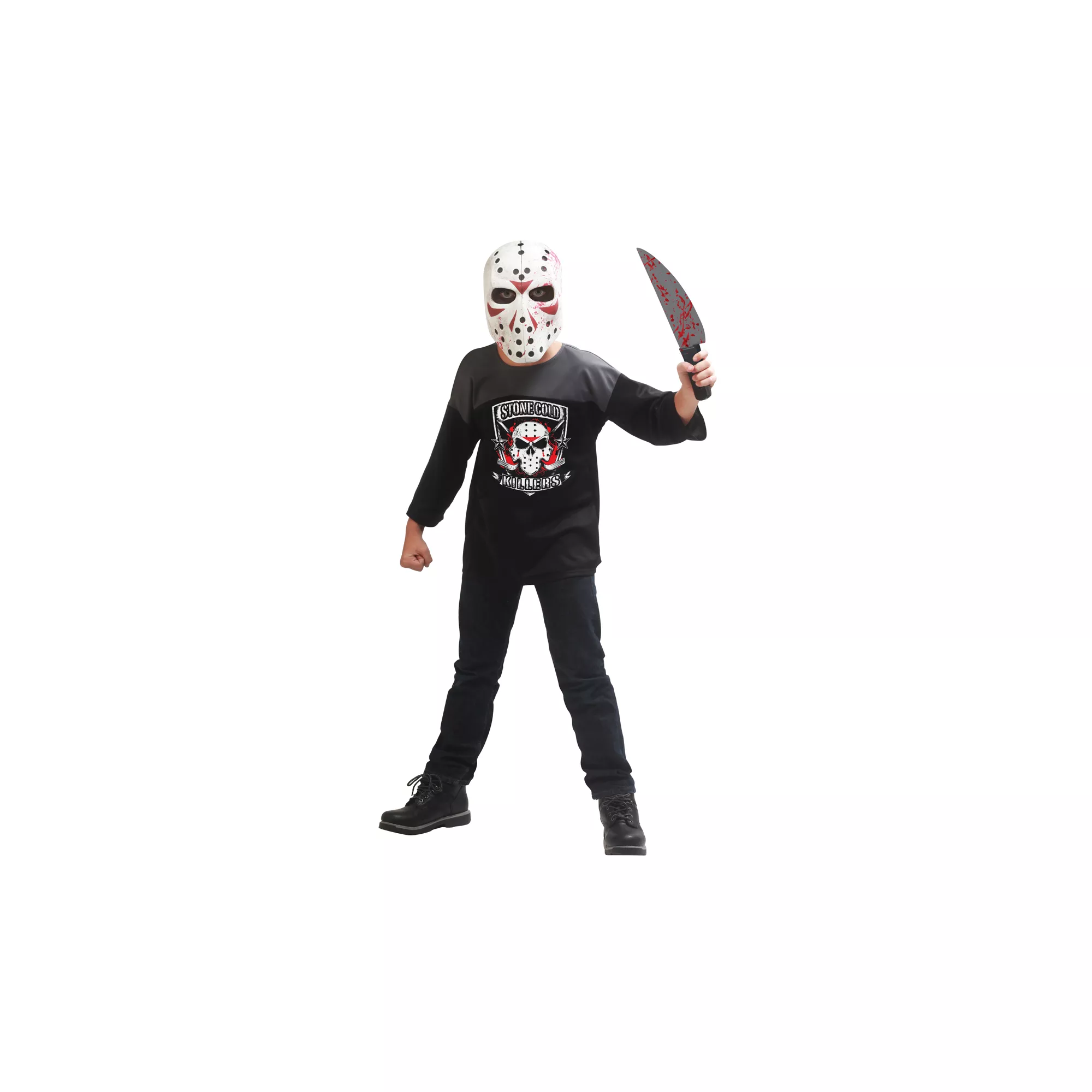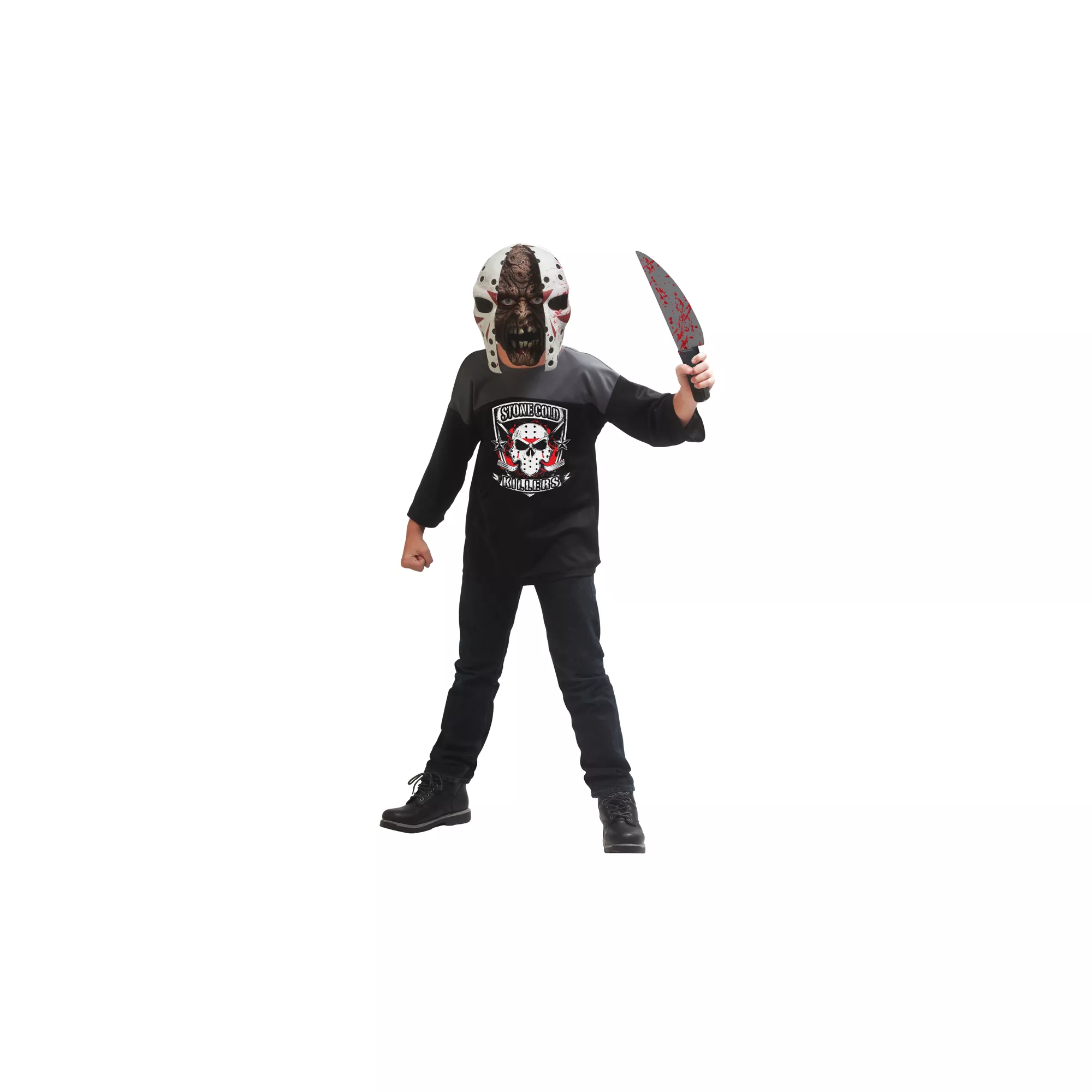 There's a maniac loose i the neighborhood! Scare up some Halloween fun when you don the child's Maniac costume and act like a stone cold killer. Brandish the faux weapon and make like a maniac behind the hockey-inspired mask - cool!