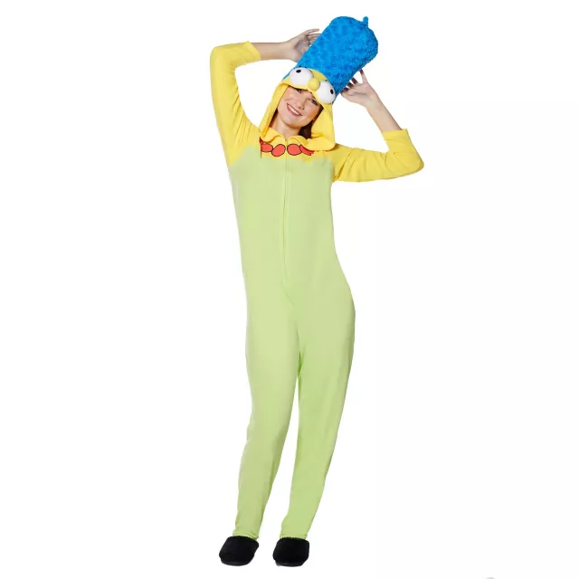 Dress up as your favorite yellow cartoon character with this adorable, officially licensed Marge Simpson pajama costume! Flip up the attached 3D hood to show off Marge's iconic blue hair! A great way to dress up and stay comfortable at the same time.