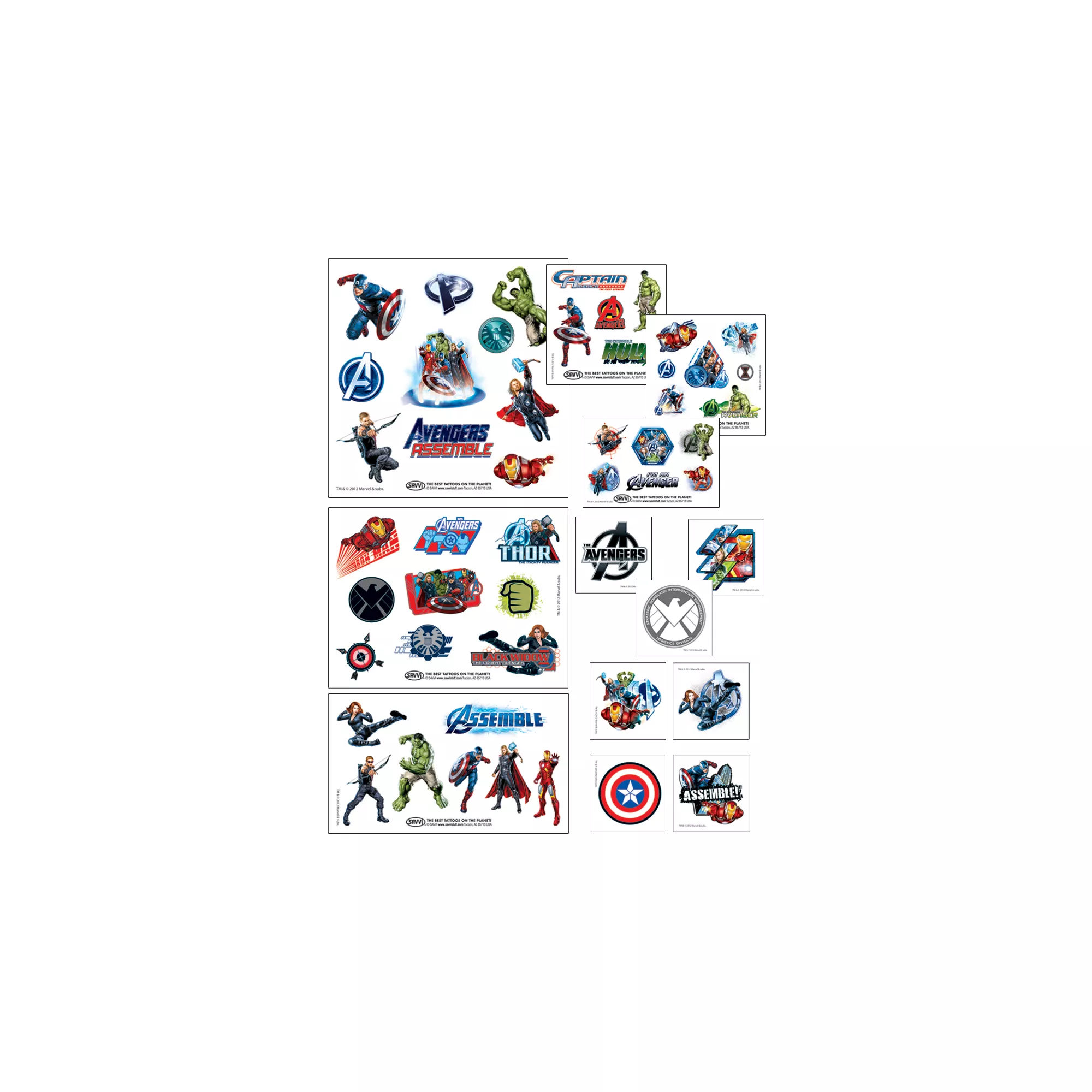 Energize your Halloween when you create or enhance your Halloween costume with one of more of these officially licensed Marvel Avengers temporary tattoos or wear them just because. Temporary tattoos are great in a goody bag or to use as Halloween treats too.