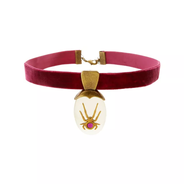 Complement your Mary Sanderson costume on Halloween night with this enchanting choker necklace! This officially licensed accessory, which features a creepy golden spider accented with an ornate purple jewel, is the perfect choice for any Hocus Pocus fan!