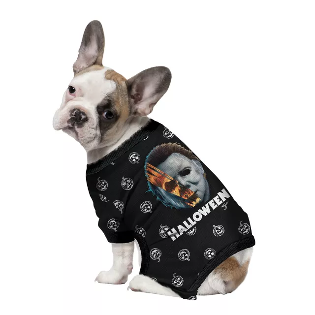 Your pet will be the spookiest on the block in these Michael Myers pajamas! This officially licensed pet costume features a haunting image of Michael Myers surrounded by grinning pumpkins.