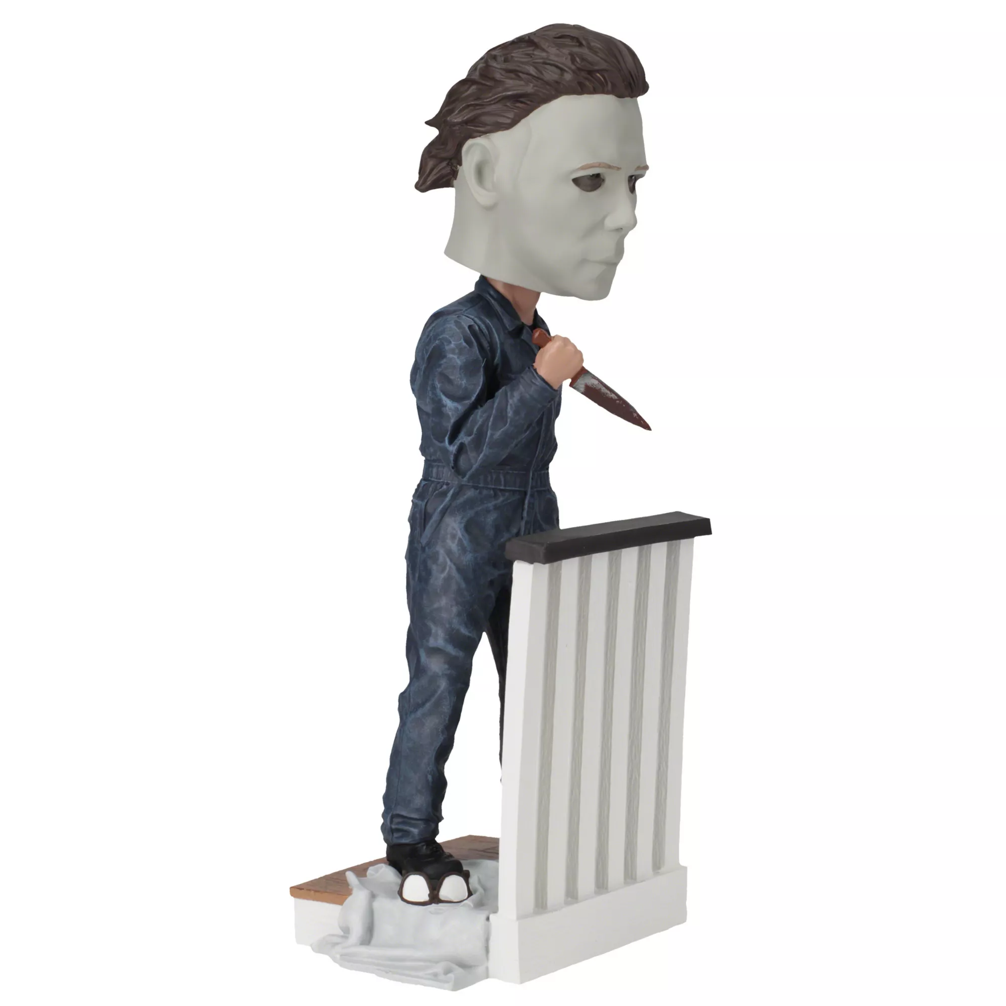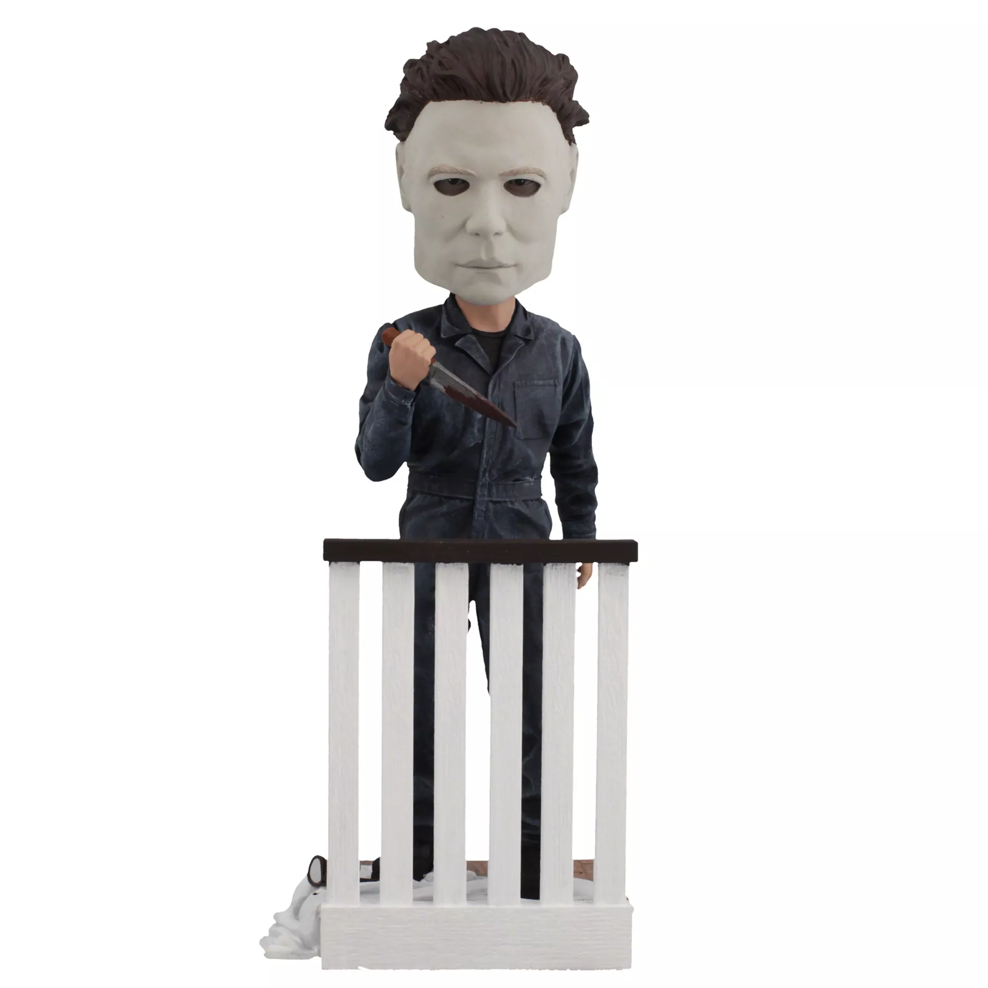Add an iconic slasher to your collectibles with this Michael Myers bobblehead. The only thing creepier than Michael's hollow-eyed stare is Michael's hollow-eyed stare while...bobbling!