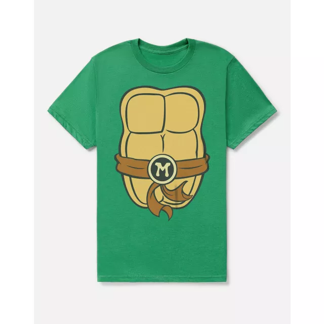 Dress up like your favorite Teenage Mutant Ninja Turtle with this green Michelangelo t shirt! This green graphic tee is inspired by Michelangelo's shell and signature belt.