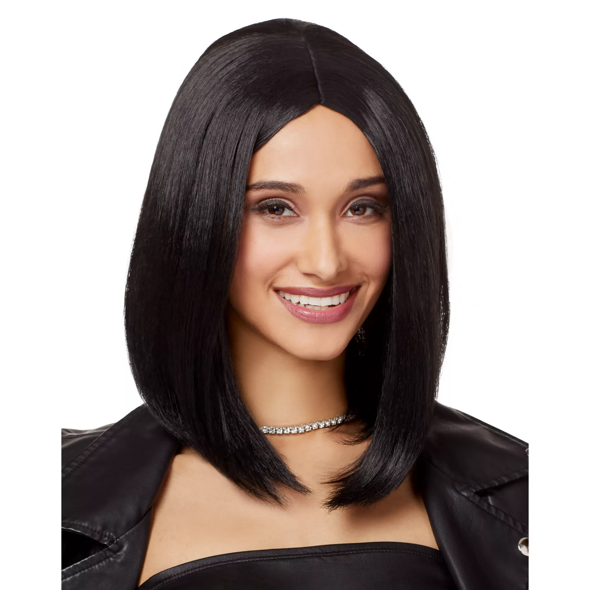 You'll look stylish and seductive when you top off your Halloween costume with this midlength black wig. No one will be able to recognize you when you show up with a completely different hairstyle!