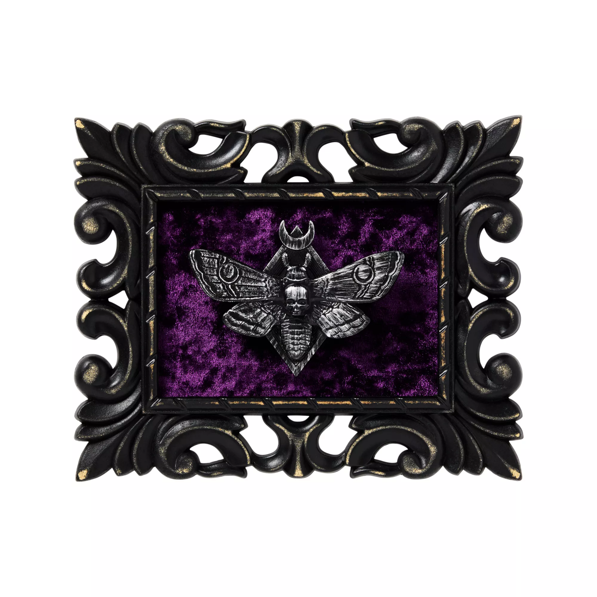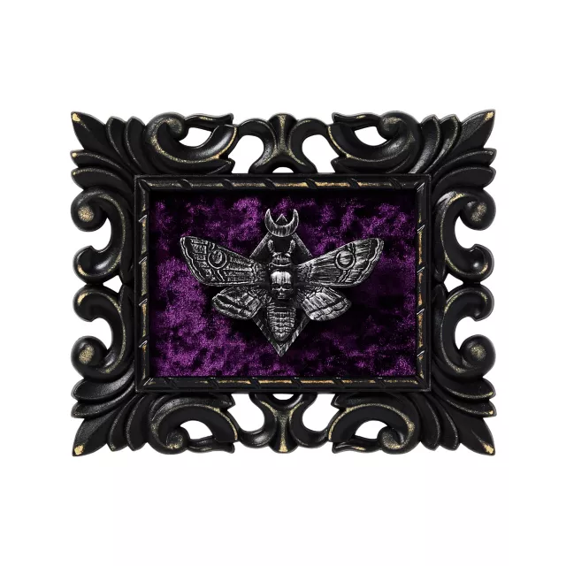 Decorate you haunted gallery with this decadent Mystical Arts Death Moth Velvet Sign. This ornate picture frame design features a death moth and a velvety purple background.