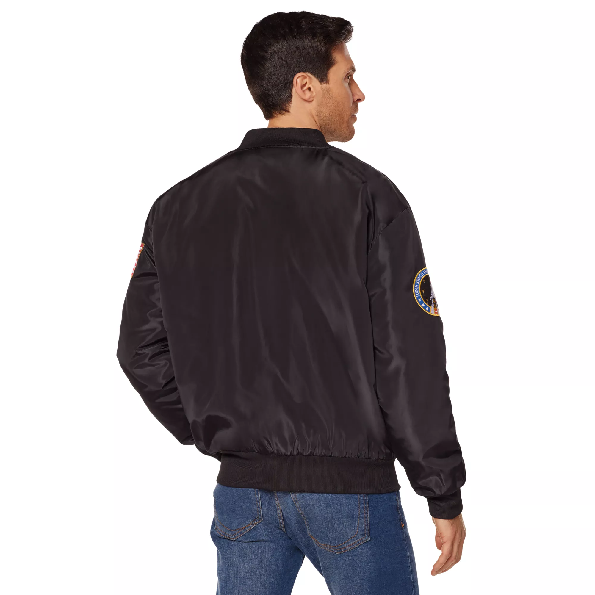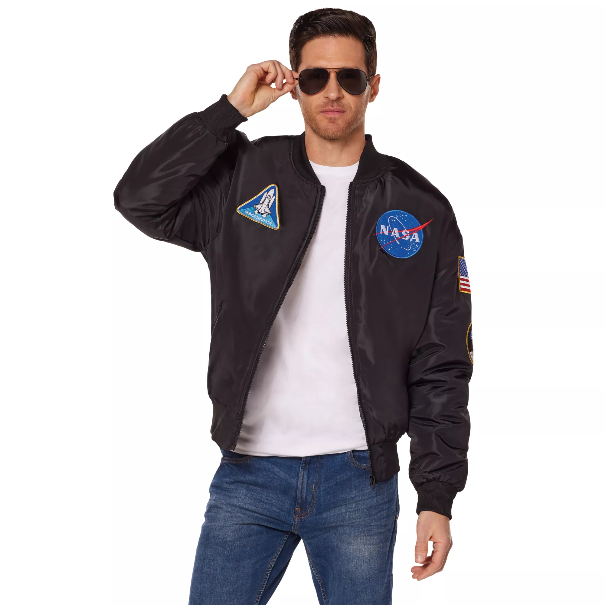 Represent NASA in style this Halloween! This jacket will have you looking like an official member of NASA team. With badge detail and a galaxy print lining, your style will be out of this world!
