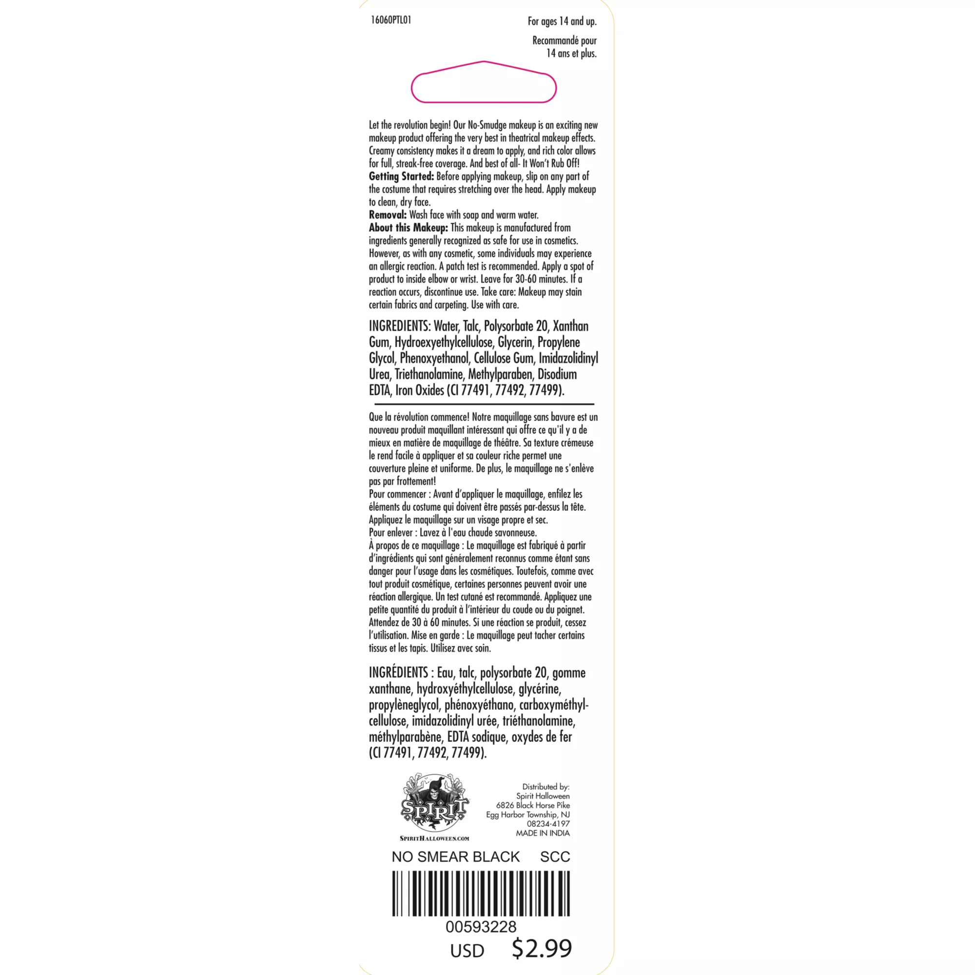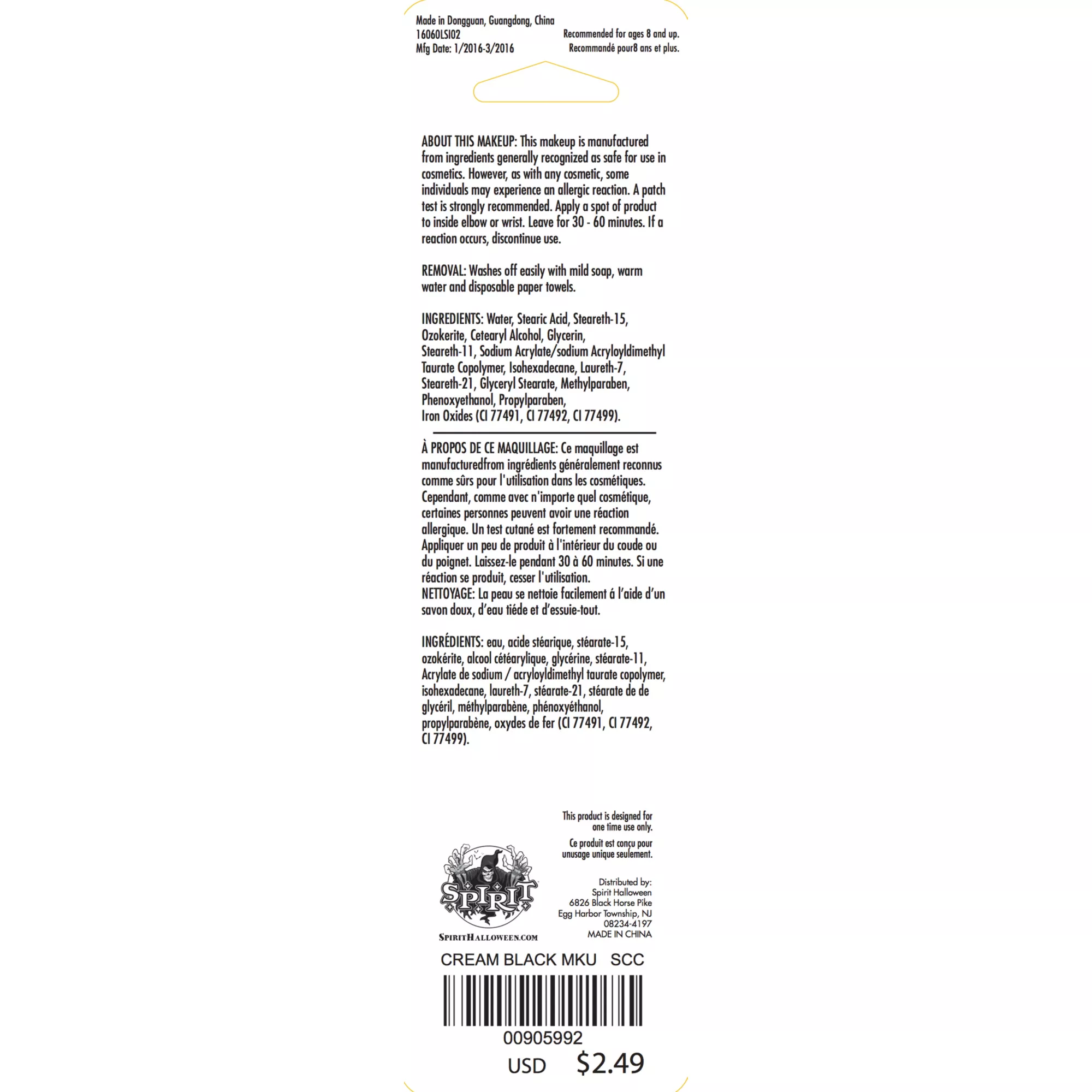 No smudge black cream makeup will transform you into a pirate, goblin, ghoul or whatever creature you fancy. Hypo-allergenic quick-drying makeup offers great coverage and will not rub off.