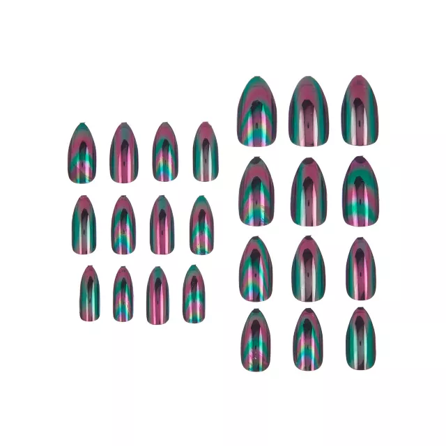 Are you trying to complete your colorful look for a fun event? These press-on nails will be sure to finalize your look with style. With a shimmery top coat, these nails won’t go unnoticed!