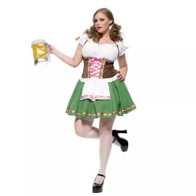 Serve it up right when you wear this Gretchen adult womens plus size costume. The darling green, peasant top dress features satin, lace-up dirndl bodice, a flattering full skirt and white apron. You're the only one who knows how to pour it just right!
